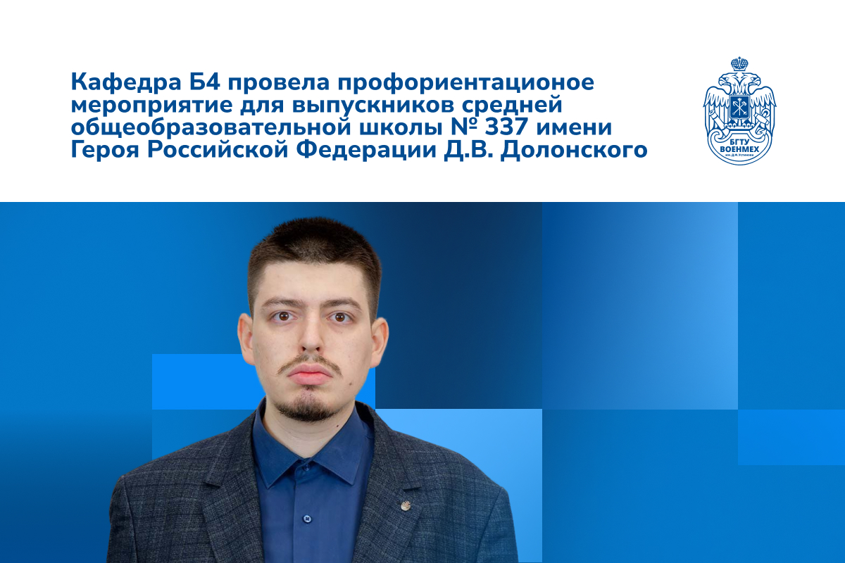 Новости, Школьникам0pxВ феврале 2026 г. представителем БГТУ «ВОЕНМЕХ» им. Д.Ф. Устинова, кафедры Б4 «Философия и история России», к.ист.н. Курочкиным Сергеем Сергеевичем было проведено профориентационное мероприятие для выпускников средней общеобразовательной школы № 337 имени Героя Российской Федерации Д.В. Долонского.