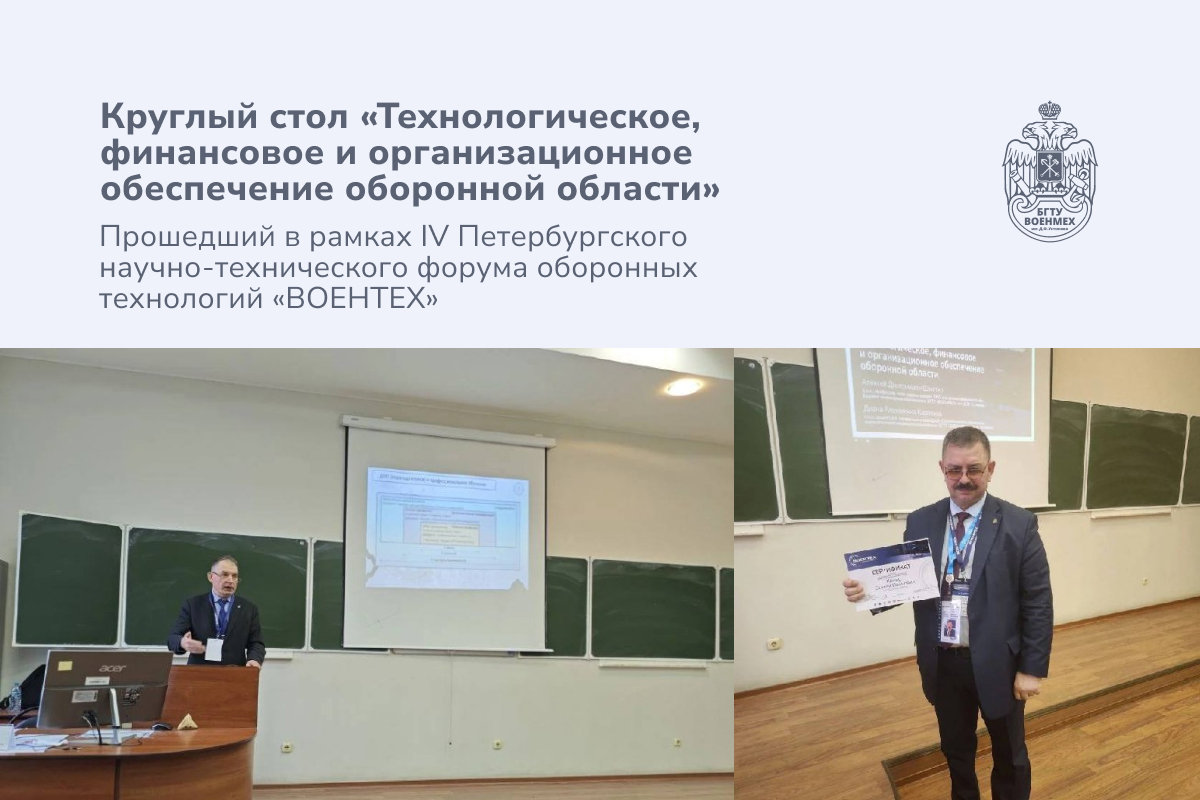 Конференции, Новости0px27 февраля в рамках IV Петербургского научно-технического форума оборонных технологий «ВОЕНТЕХ», приуроченного к 80-летию со дня образования Первого инженерного факультета реактивного вооружения в СССР под руководством профессора, доктора технических наук, Григория Григорьевича Шелухина (1916-2008), состоялся круглый стол «Технологическое, финансовое и организационное обеспечение оборонной области».