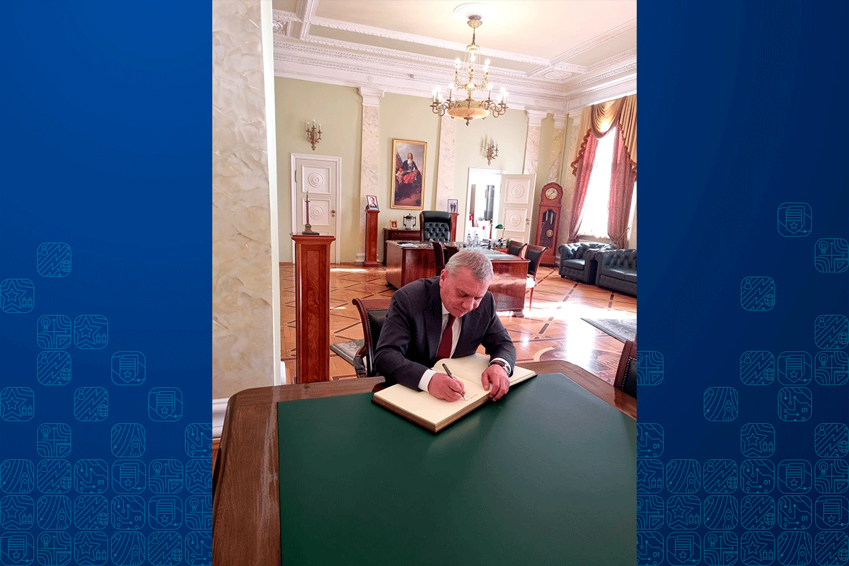 В ректорате Юрий Иванович оставил запись в книге почетных гостей университета и обменялся памятными подарками с ректором.