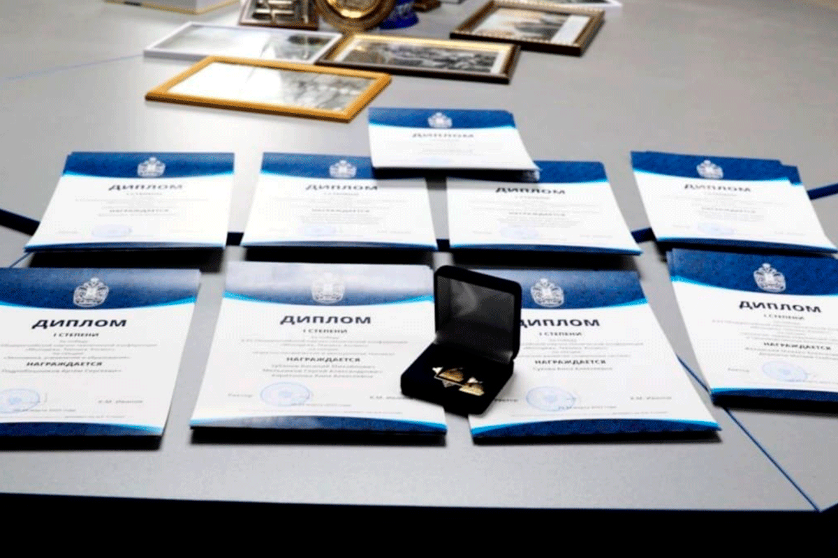 Дипломы вручали проректор по образовательной деятельности и цифровизации БГТУ «ВОЕНМЕХ» им. Д.Ф. Устинова А.Е. Шашурин и начальник ЦНТТС, выступившего организатором конференции, В.А. Толстая.