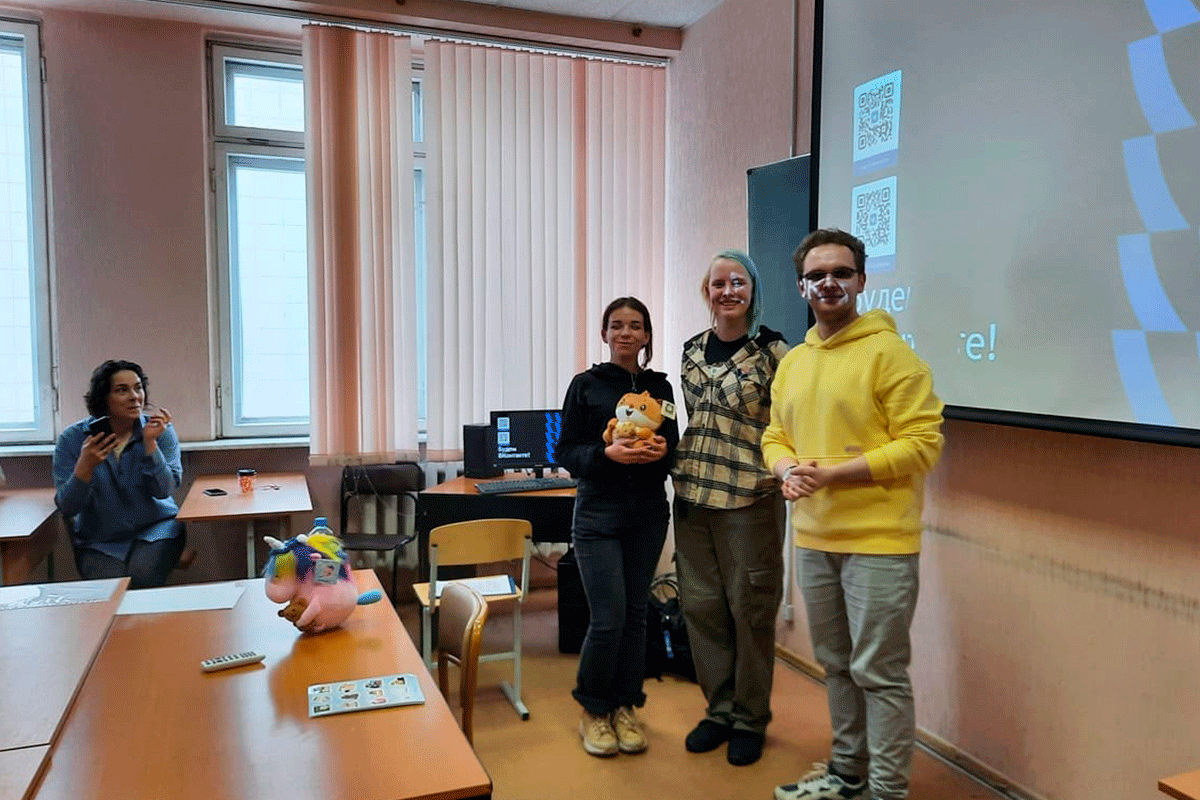 31 марта 2023 года кафедра Р7 принимала интересных гостей — выпускница-2022 нашего переводческого отделения Варвара Просвиркина, которая работает менеджером по локализации в Отделе перевода в VK Корпорации, привела с собой коллег — заместителя руководителя Отдела перевода Марию Андреевну Рудь и старшего менеджера по локализации Андрея Минчукова. Представители компании подготовили и провели для наших студентов семинар о специфике процессов локализации в сети, которые, помимо самого перевода с языка на язык, требуют учитывать культурные, исторические и социальные особенности тех регионов и стран, для которых предназначен переводимый сайт.