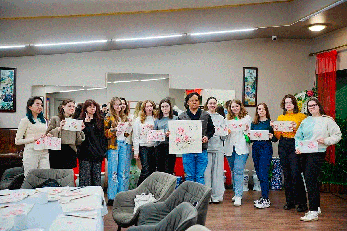 Студентам удалось попробовать некоторые виды китайского чая, узнать секреты его заваривания, а также увидеть китайского чайного мастера за работой и задать ему интересующие вопросы. После посещения чайной церемонии студенты попробовали себя в качестве художников – китайский живописец Сун Жуй показал студентам традиционный метод написания цветка и подарил университету свою работу. По окончании мастер – классов ребята посетили магазин китайской продукции.