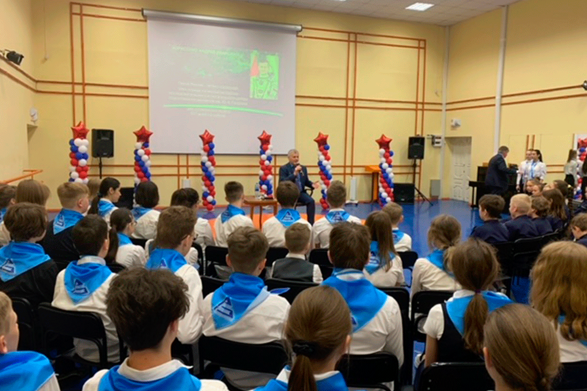 Следующим местом посещения была гимназия № 155, на встрече с учащимися 9-10 классов также присутствовали учащиеся-юнармейцы и руководители МАОУ «Средняя образовательная школа № 55 имени Льва Брусницына», с которыми наш университет установил партнерские отношения. Традиционно живой интерес вызвали выступления Е.А. Знаменского и А.И. Борисенко.