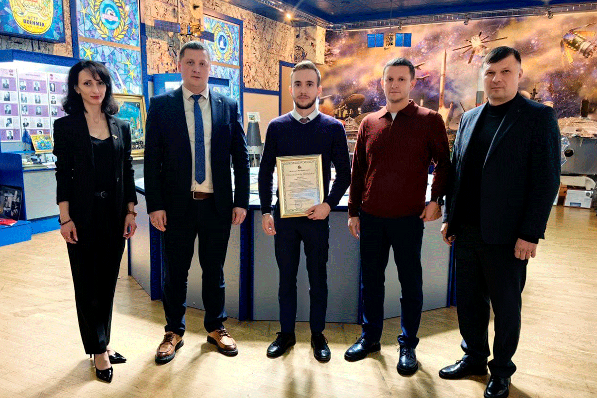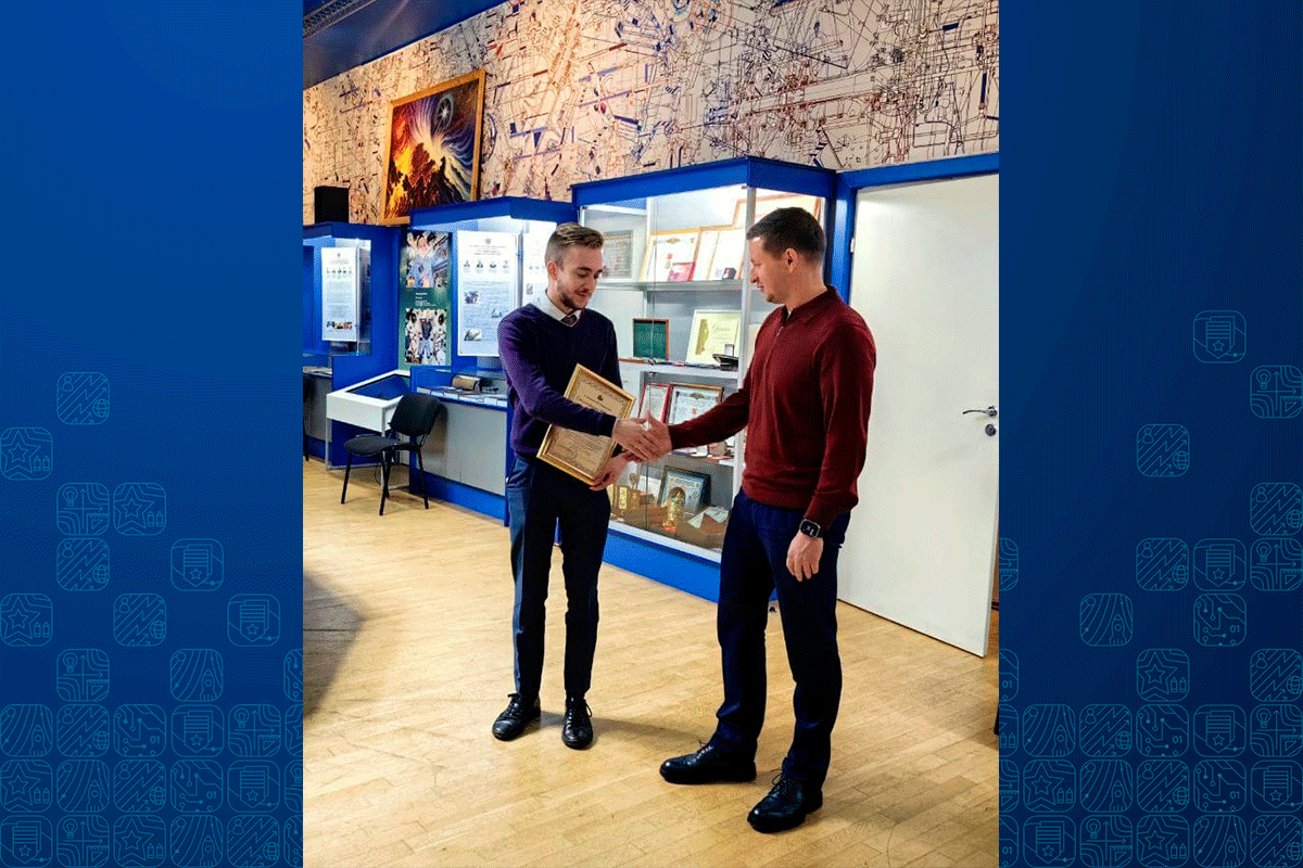 12 октября состоялось торжественное вручение диплома победителю. В награждении принимали участие заместитель генерального конструктора по перспективным проектам АО «Концерн ВКО «Алмаз – Антей» – Артем Павлович Коновальчик, генеральный конструктор ПАО НПО «Стрела» – Сергей Владимирович Марков, проректор по образовательной деятельности и цифровизации – Александр Евгеньевич Шашурин, , начальник межотраслевого научно-образовательного центра БГТУ «ВОЕНМЕХ» – Вероника Александровна Толстая.