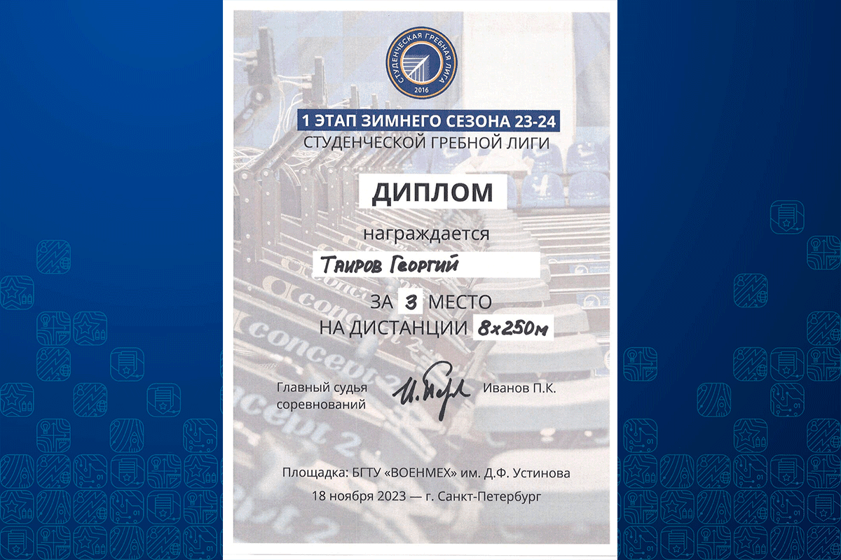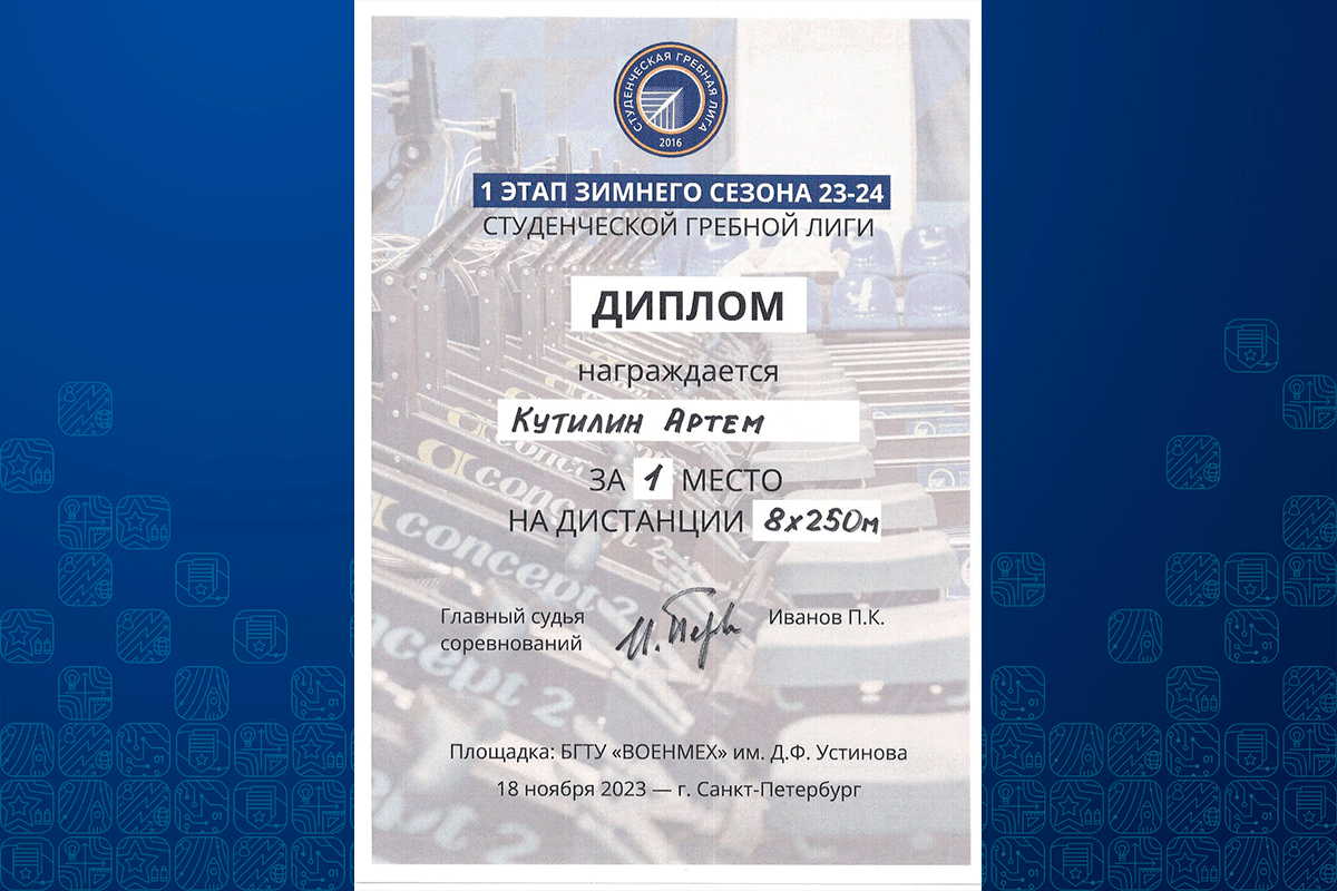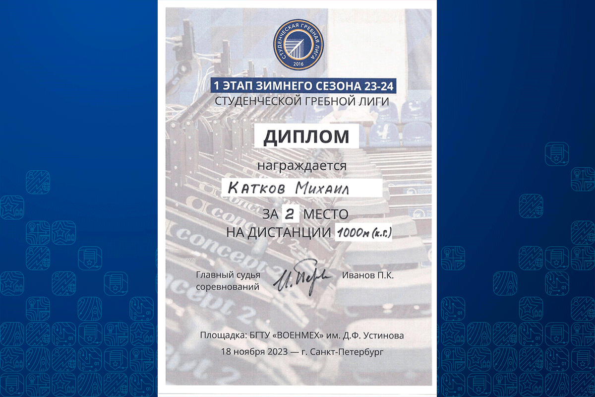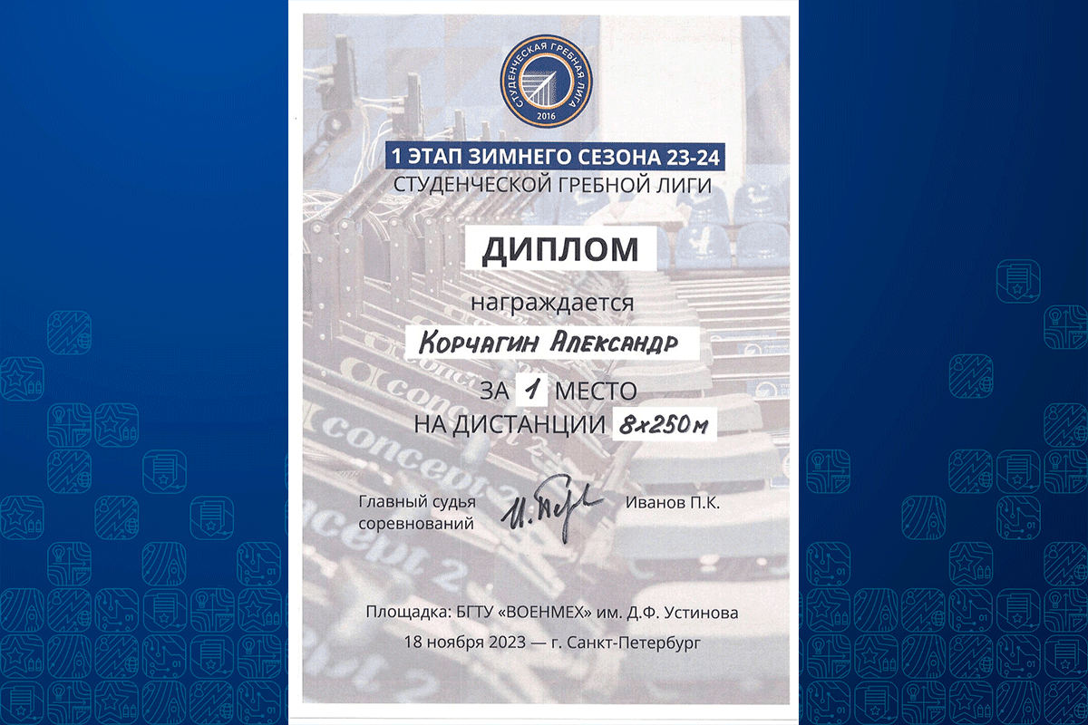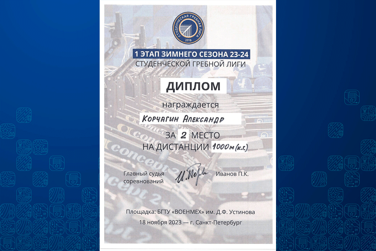 В субботу 18.11.2023г. в родных стенах БГТУ «ВОЕНМЕХ» им. Д.Ф. Устинова гонялись свыше 70 спортсменов, от ВУЦ выступили 8 студентов, проходящих обучения по программе подготовки офицеров кадра и 11 студентов, проходящих обучения по программе подготовки офицера запаса. Этап проходил в рамках Всероссийского Кубка среди студентов по гребному спорту (дисциплина – гребля-индор).