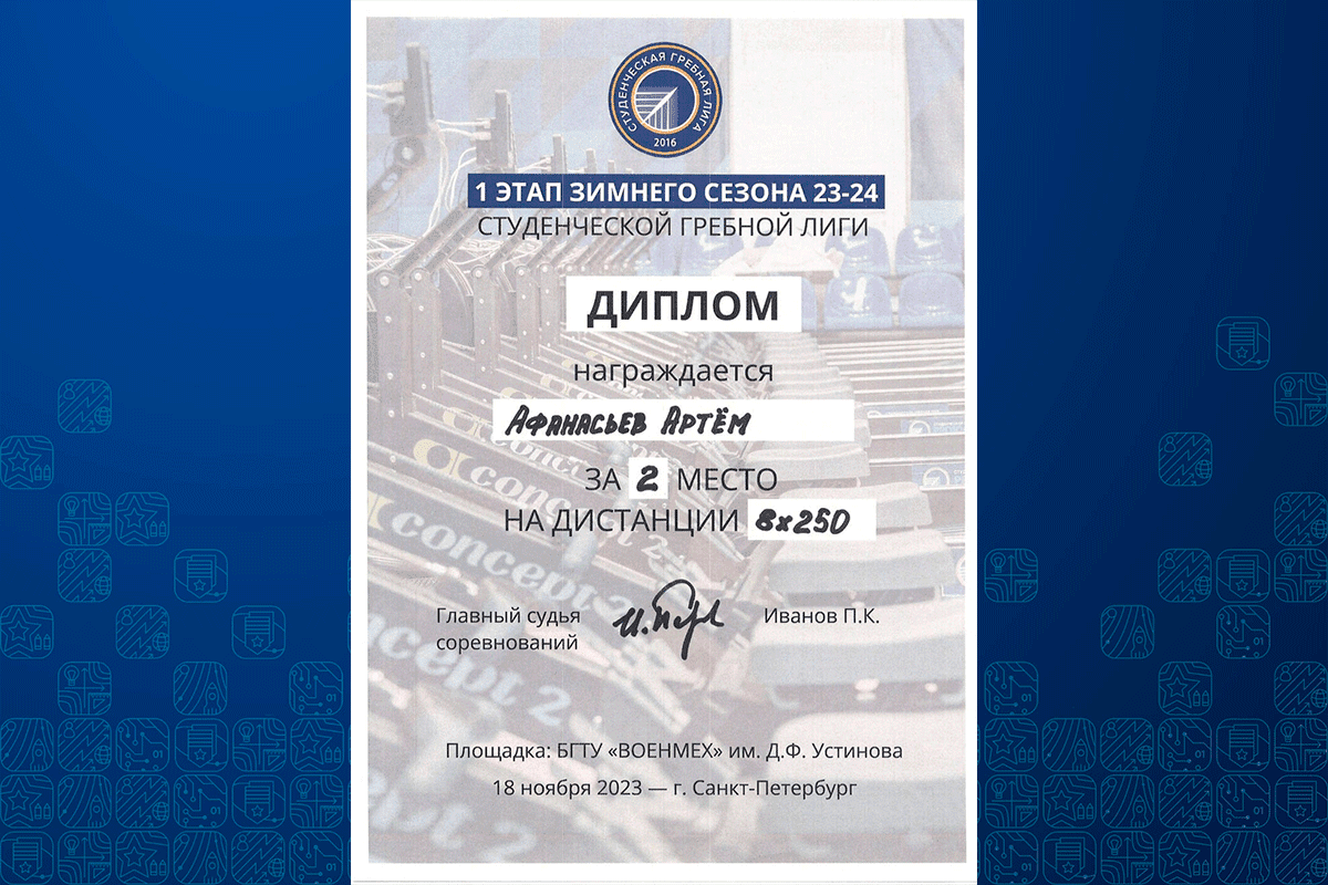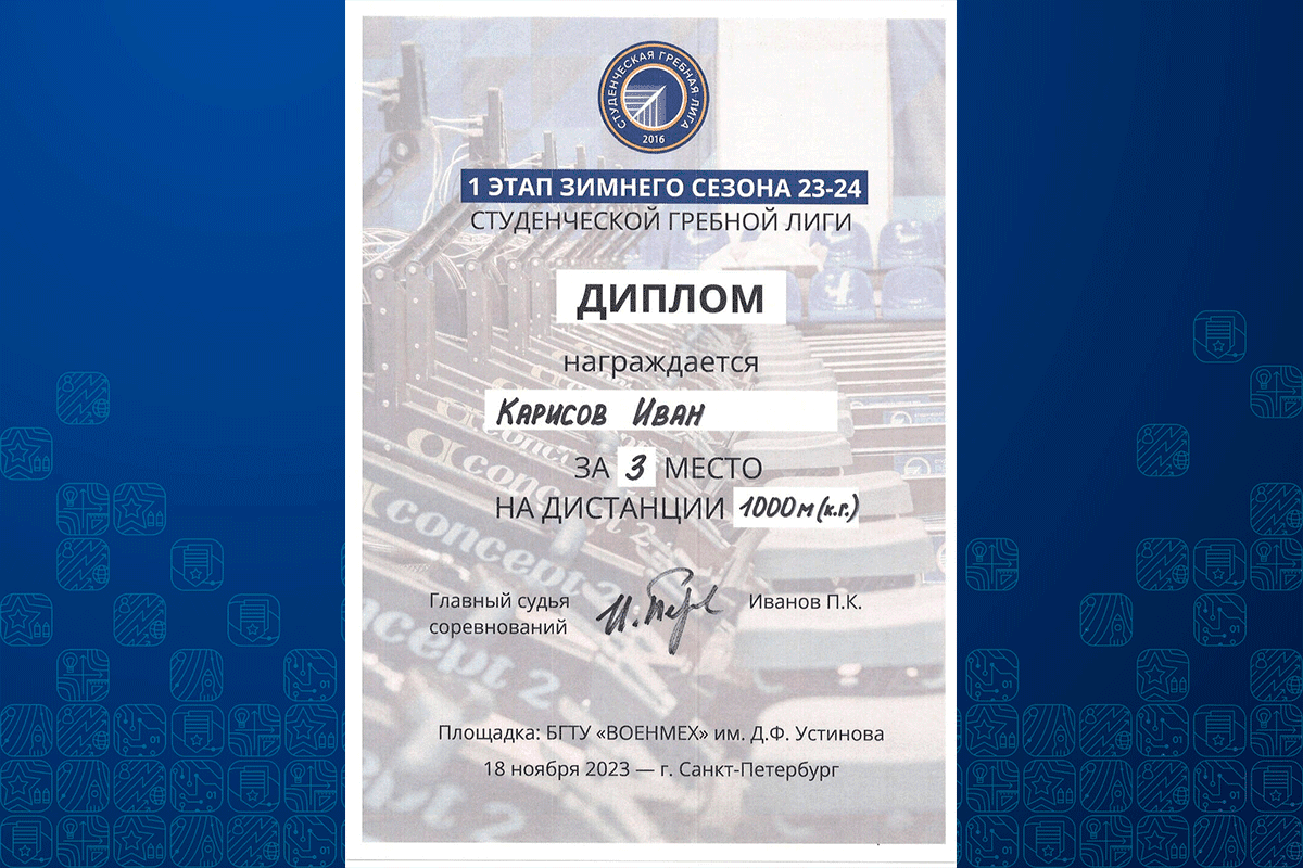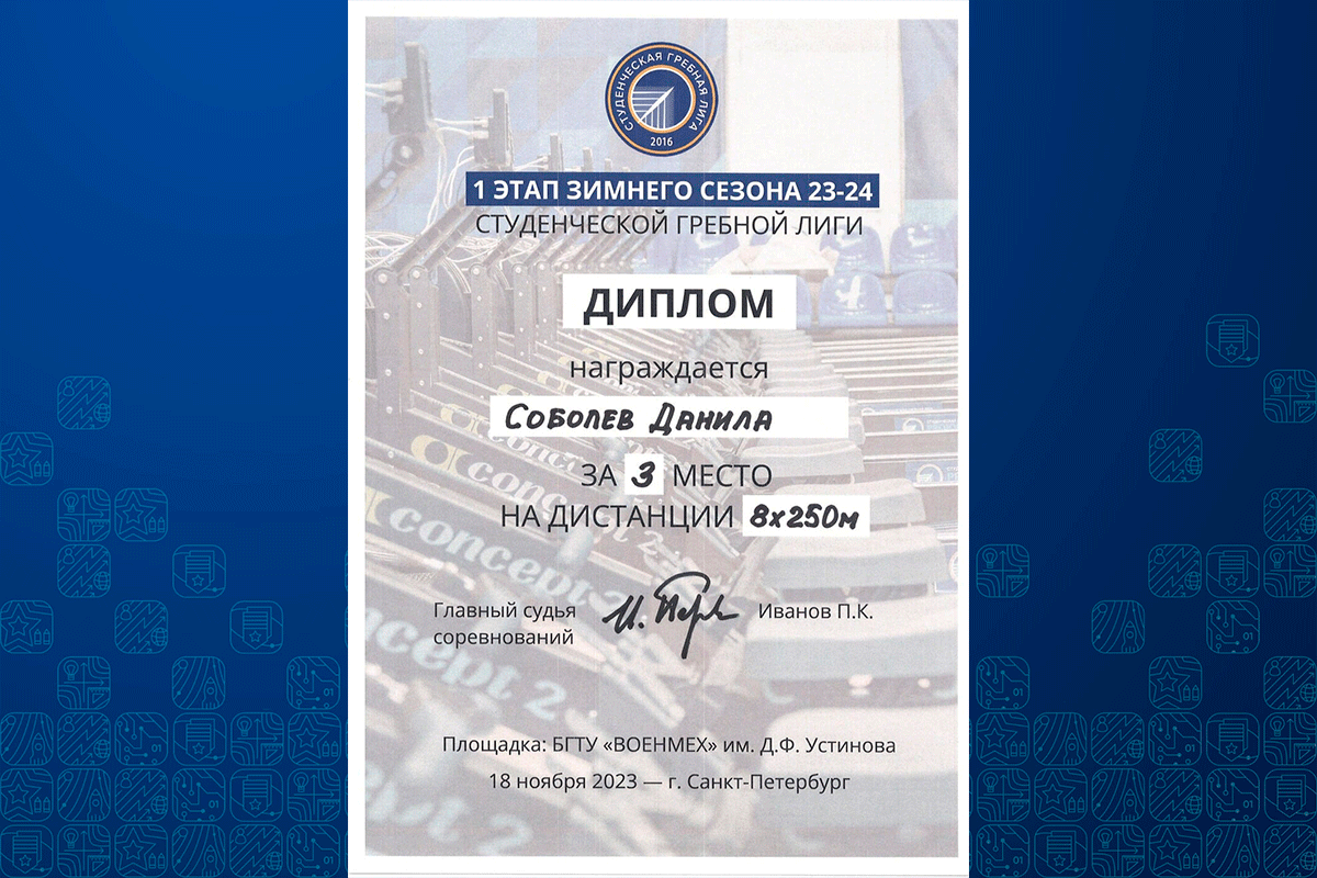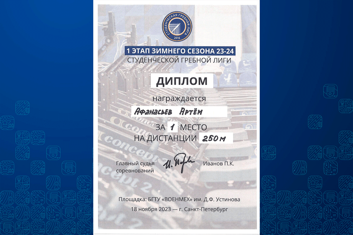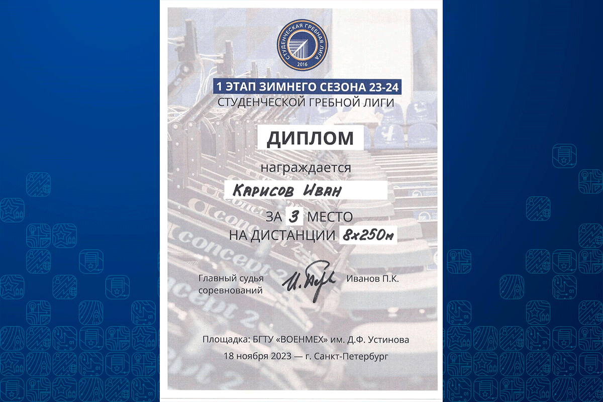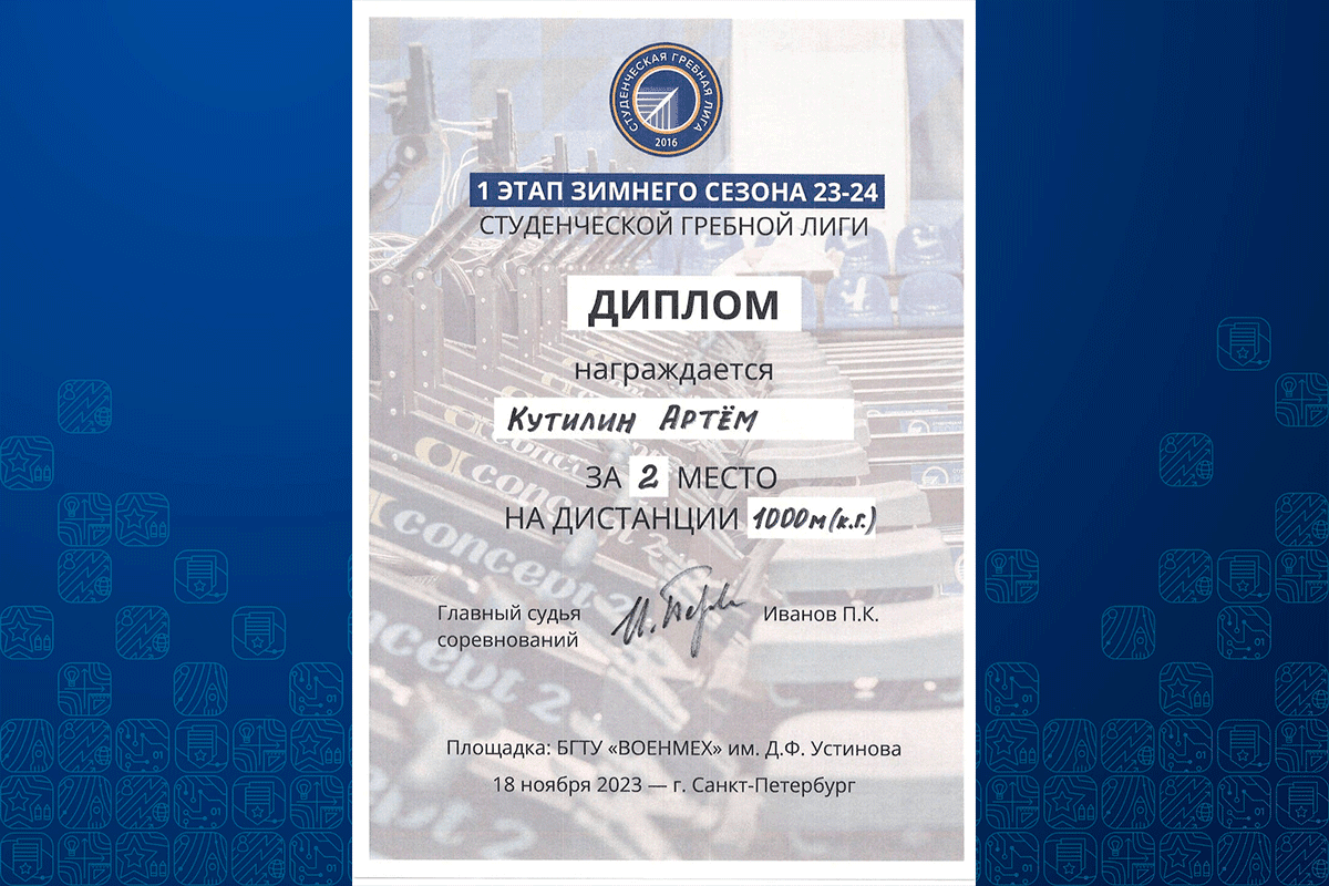 В субботу 18.11.2023г. в родных стенах БГТУ «ВОЕНМЕХ» им. Д.Ф. Устинова гонялись свыше 70 спортсменов, от ВУЦ выступили 8 студентов, проходящих обучения по программе подготовки офицеров кадра и 11 студентов, проходящих обучения по программе подготовки офицера запаса. Этап проходил в рамках Всероссийского Кубка среди студентов по гребному спорту (дисциплина – гребля-индор).