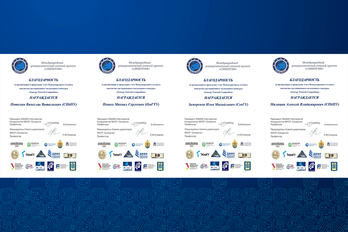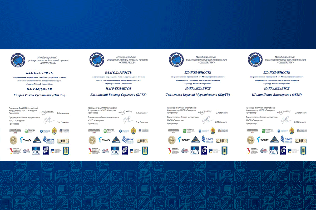 отмечены благодарностями Международного университетского сетевого проекта «Синергия».