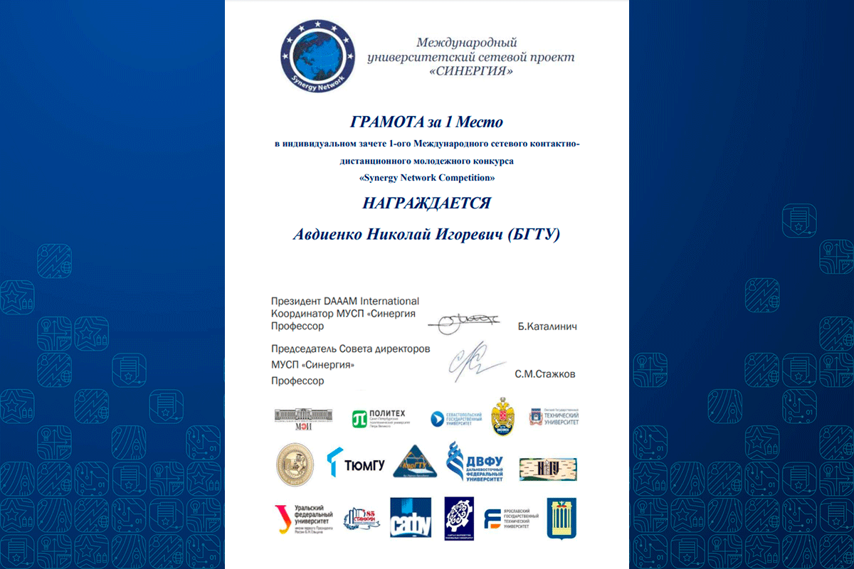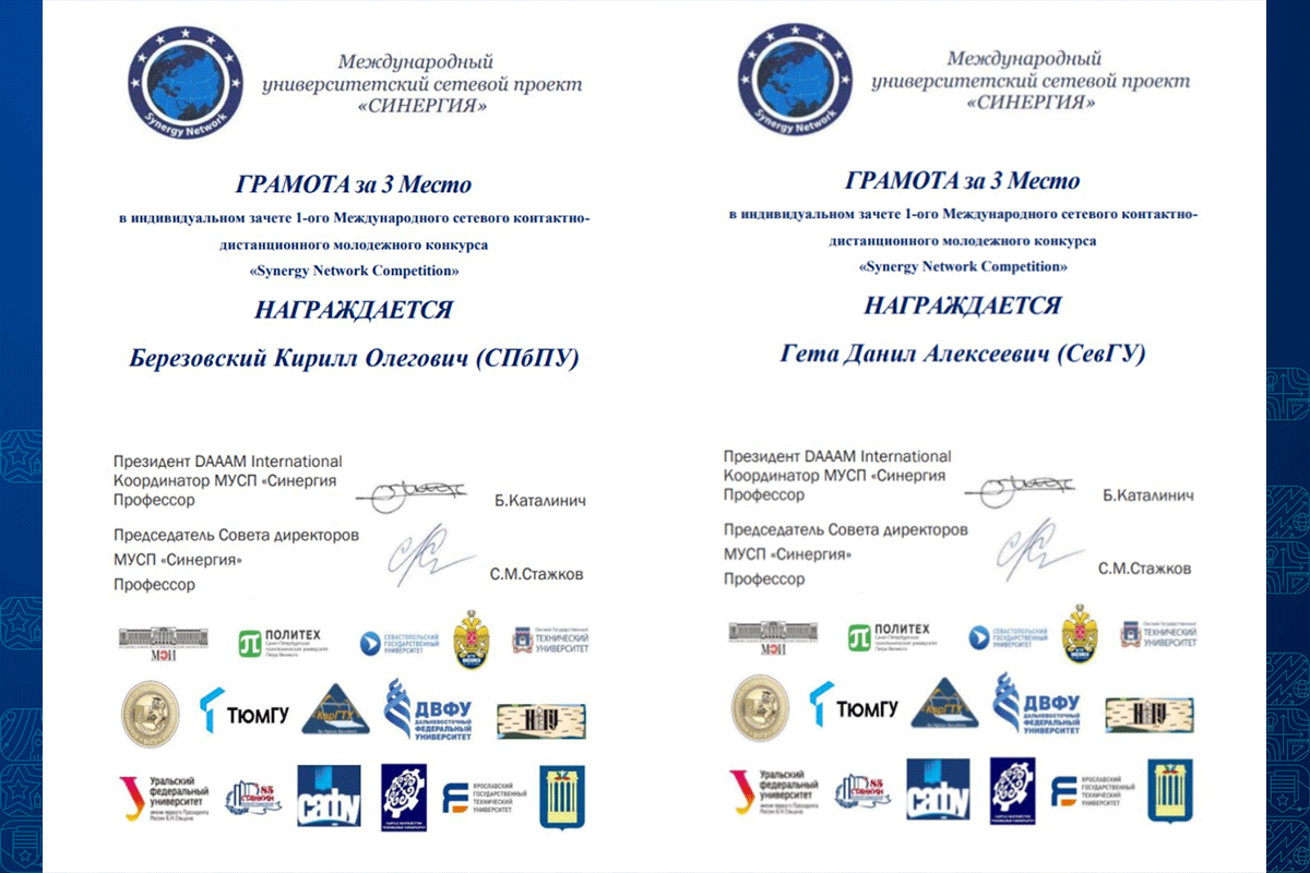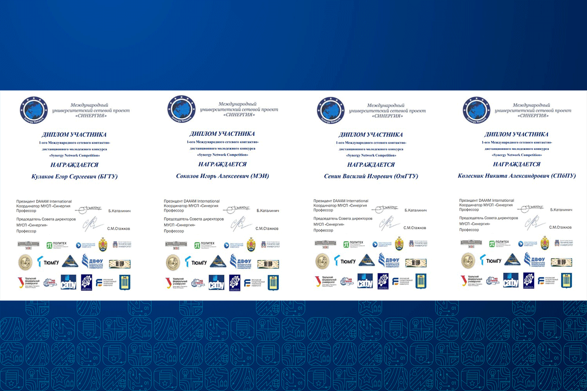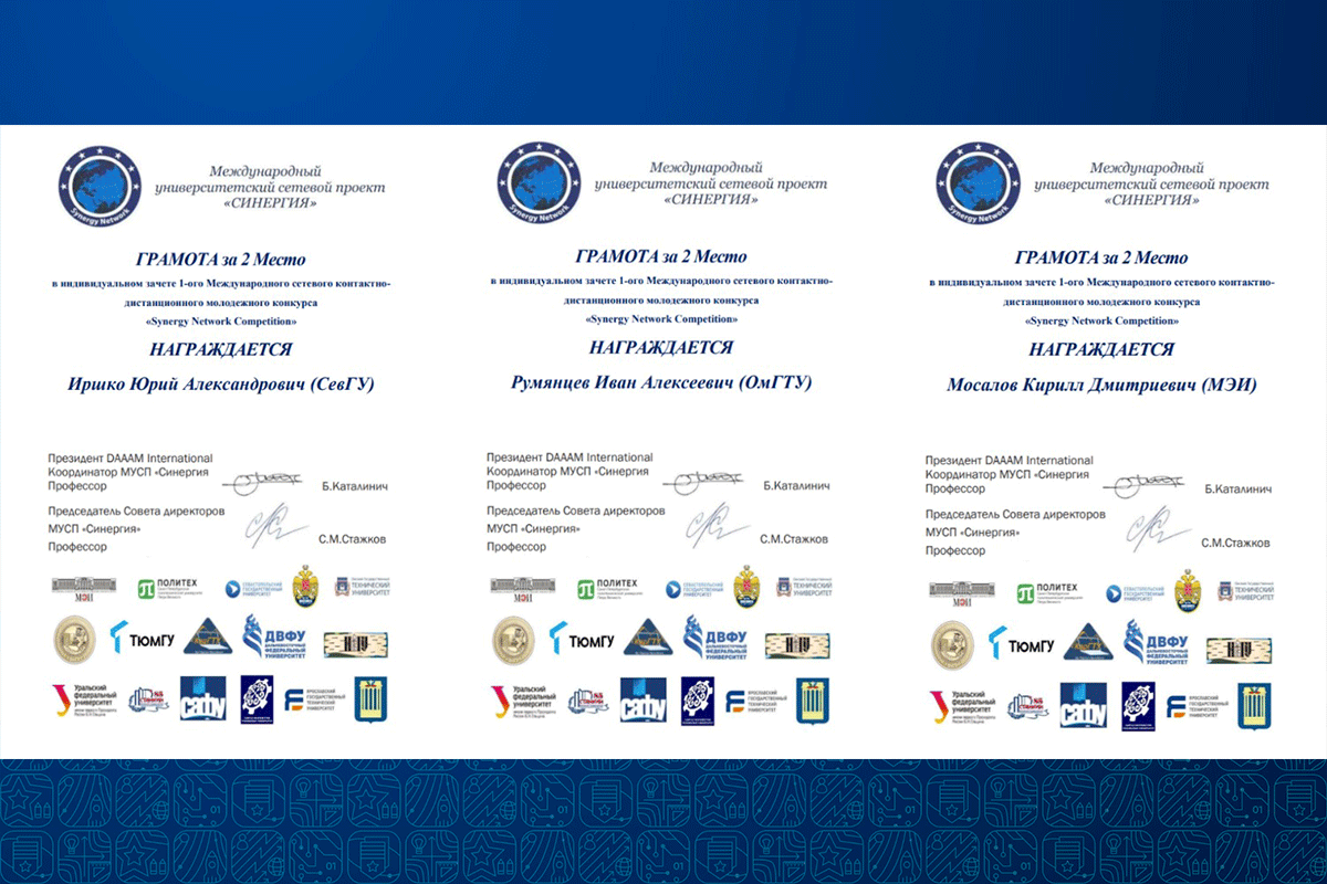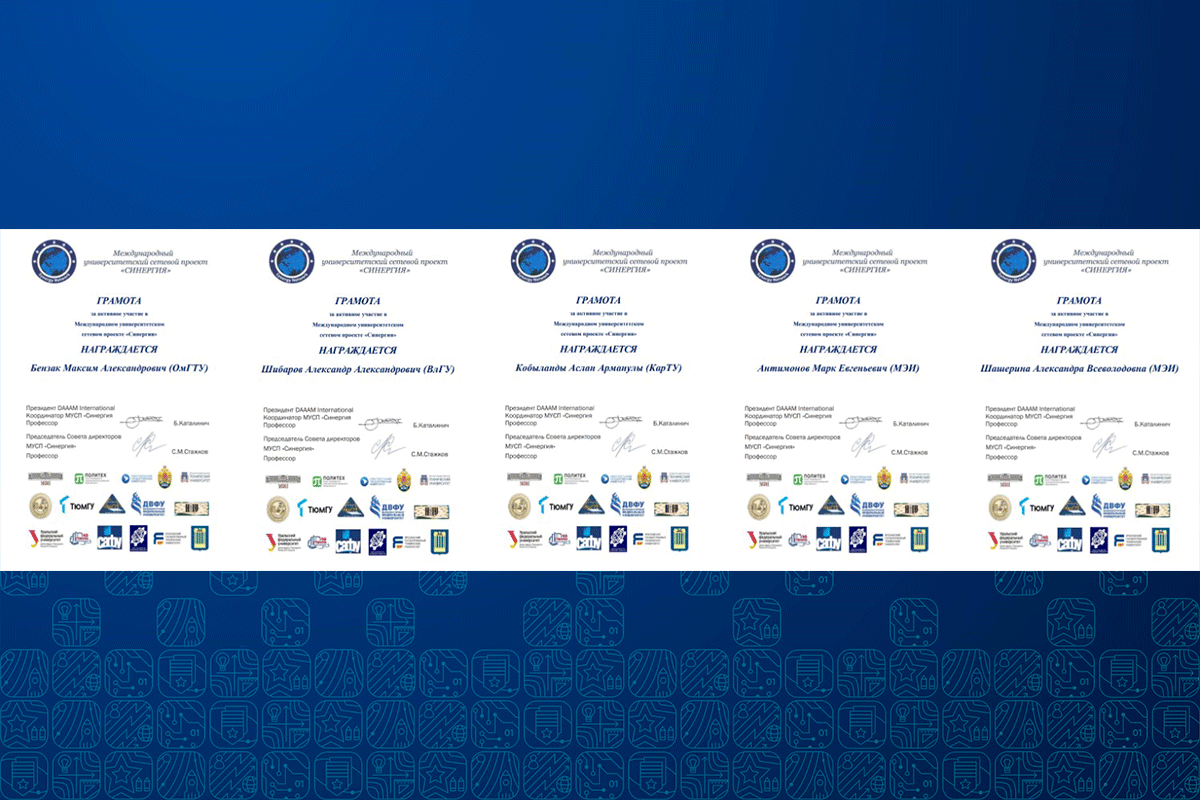 Авторы лучших выпускных квалификационных работ были награждены грамотами Международного университетского сетевого проекта «Синергия». Ряд выпускников, прошедших обучение на специализированном оборудовании, также получили Сертификаты ООО «СМАРТ-АВТОМАТИЗАЦИЯ».