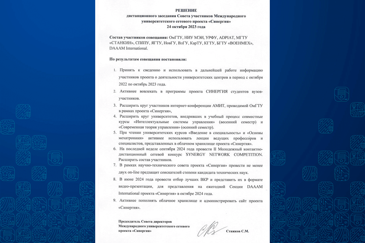 24 октября 2023 года в рамках Симпозиума DAAAM International состоялось ежегодное заседание Совета руководителей Международного университетского сетевого проекта «Синергия».