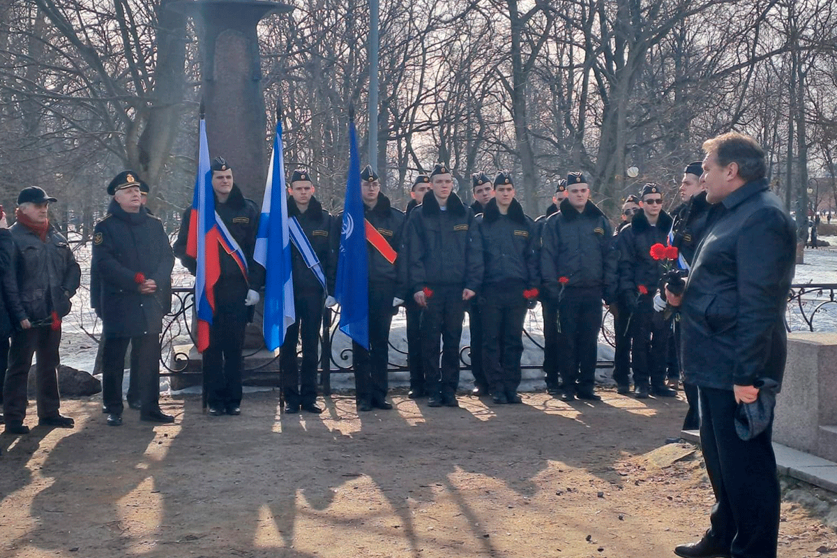 Вчера, 12 марта, в 12 часов в Александровском парке состоялся митинг, посвященный подвигу экипажа миноносца «Стерегущий». Почтить память, по традиции, пришли студенты Военных учебных центров при Балтийском государственном техническом университете «ВОЕНМЕХ» им. Д. Ф. Устинова и Санкт-Петербургском государственном электротехническом университете «ЛЭТИ», учащиеся «Морского кадетского класса» школы №84 Петроградского района, Санкт-Петербургского морского рыбопромышленного колледжа, ветераны флота и представители администрации муниципального образования Кронверкское.