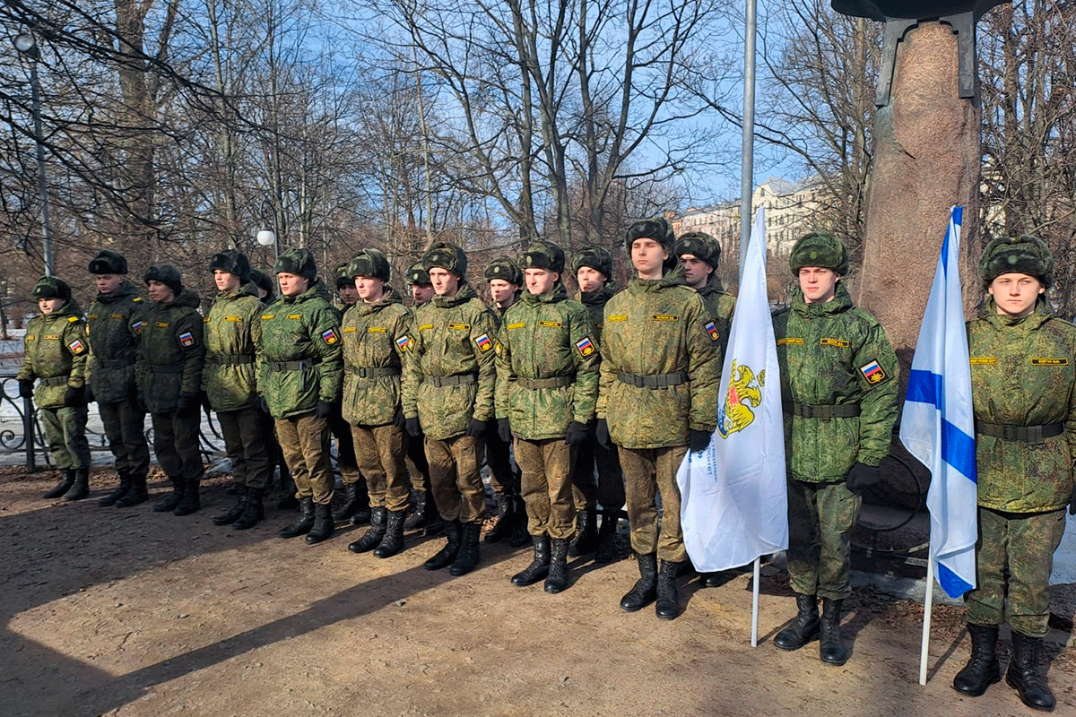 Вчера, 12 марта, в 12 часов в Александровском парке состоялся митинг, посвященный подвигу экипажа миноносца «Стерегущий». Почтить память, по традиции, пришли студенты Военных учебных центров при Балтийском государственном техническом университете «ВОЕНМЕХ» им. Д. Ф. Устинова и Санкт-Петербургском государственном электротехническом университете «ЛЭТИ», учащиеся «Морского кадетского класса» школы №84 Петроградского района, Санкт-Петербургского морского рыбопромышленного колледжа, ветераны флота и представители администрации муниципального образования Кронверкское.