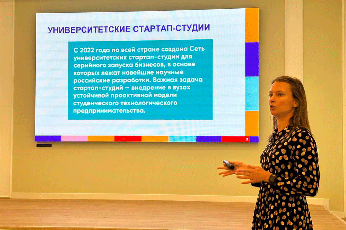 11 марта 2024 года состоялась встреча обучающихся БГТУ «ВОНМЕХ» им. Д.Ф. Устинова по направлениям подготовки «Реклама и связи с общественностью» и «Экономика» с генеральным директором ООО «Стартап-студия Центра Алмазова» Анастасией Григорьевой.