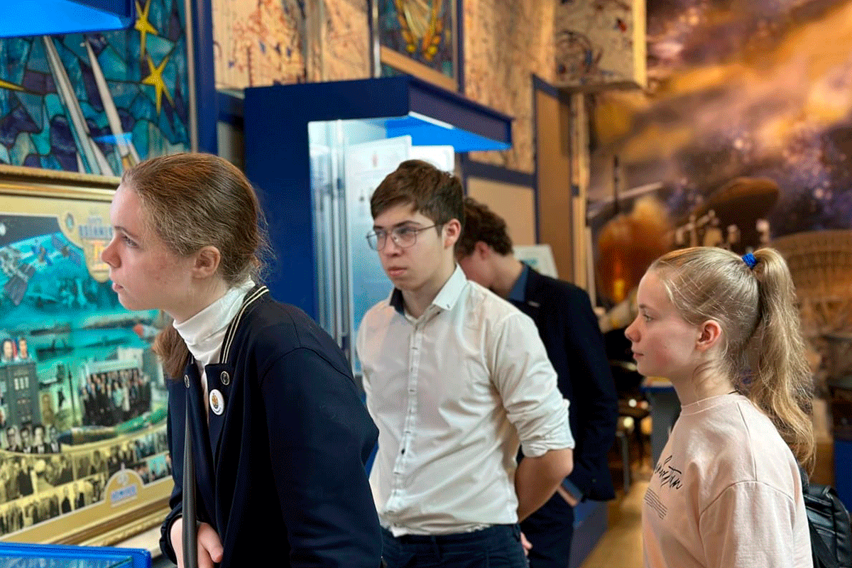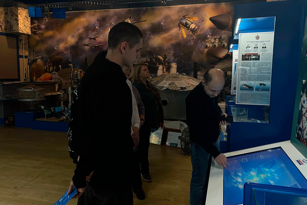 В космическом зале музея заместитель директора музея БГТУ «ВОЕНМЕХ» им. Д.Ф. Устинова Охочинский Дмитрий Михайлович рассказал гостям об основных вехах становления ракетостроения в нашей стране и наших именитых выпускниках.