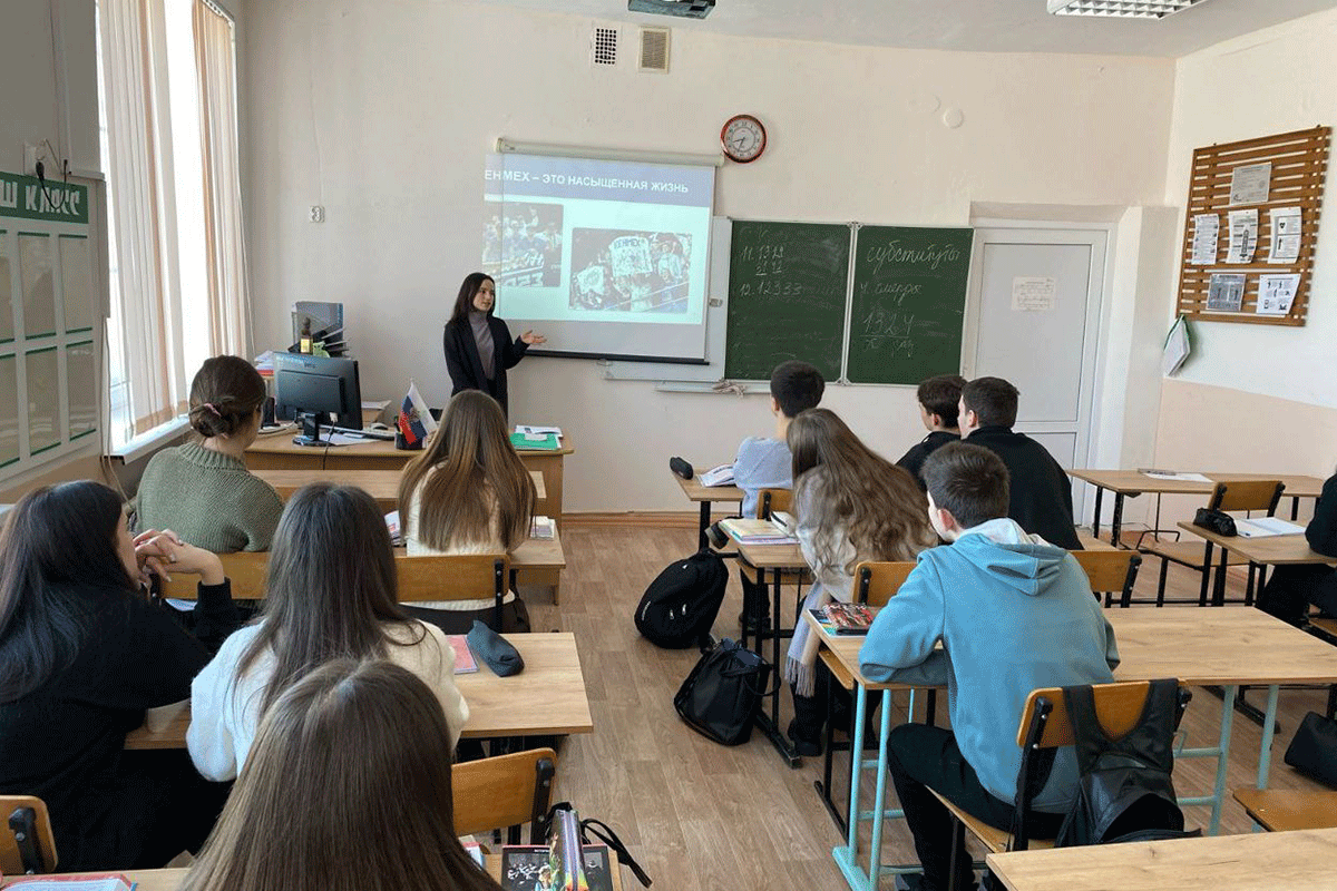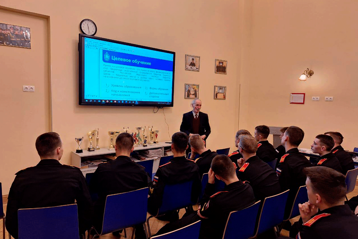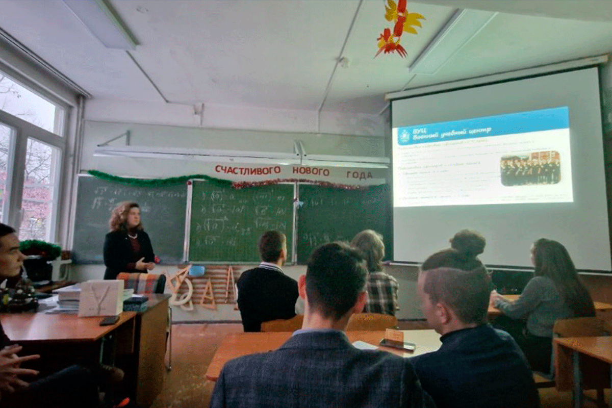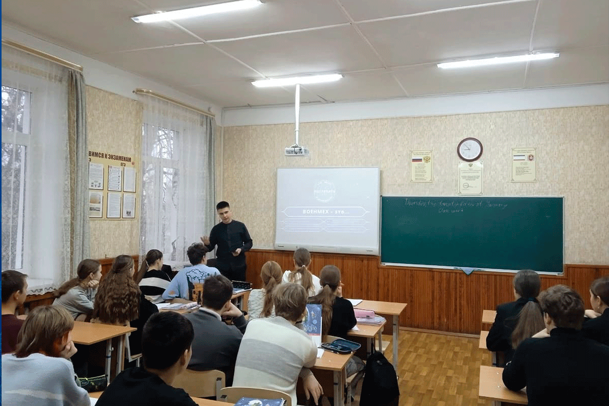 25 января в МБОУ «Гимназия №5 г. Феодосии Республики Крым» учащийся Военмеха провел профориентационную встречу с учащимися школы.