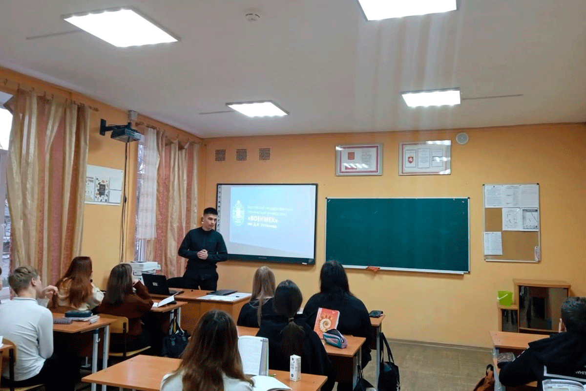 25 января в рамках профориентационных мероприятий сотрудник Военмеха посетил школу № 574 Невского района города Санкт-Петербурга.