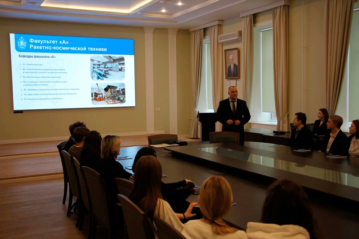 Основную информацию об университете учащимся довел декан факультета Е «Оружие и системы вооружения» Суслин Александр Владимирович. Он познакомил школьников с направлениями подготовки в вузе и их особенностями, перспективами карьерного роста выпускников, а после этого ребятам была проведена увлекательная экскурсия по аэрокосмическому музею. Далее школьники посетили лаборатории кафедр физики и электротехники.