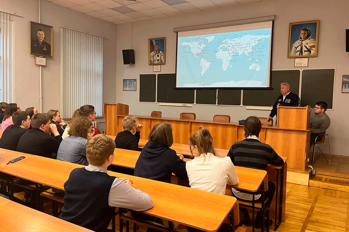 28 февраля прошла лекция для школьников на тему «История ракетно-космической техники, состав и устройство космодрома Байконур». Мероприятие вел специально приглашенный гость — Шаталов Дмитрий Владимирович, директор ГБОУ «Лицей «МКШ им. В.Н. Челомея» города Байконур.