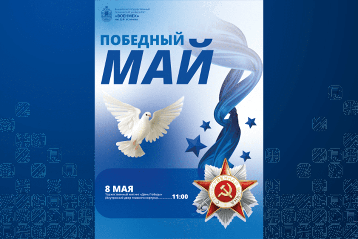 Торжественный митинг и встреча с ветеранами Великой Отечественной войны в БГТУ «ВОЕНМЕХ» им. Д.Ф. Устинова состоятся 8 мая в 11:00 у мемориала главного корпуса университета