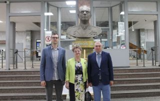 Затем прозвучал доклад «История создания современной ракетной техники в Советском Союзе» внука Дмитрия Фёдоровича Устинова – Сергея Александровича Немцова, генерального директора ООО «Хелен и Ко», г. Москва. Сергей Александрович рассказал о выдающемся вкладе Д.Ф. Устинова в военную и космическую отрасль страны: «Дмитрий Фёдорович Устинов, если современным языком объясняться, был директором ракетной отрасли в Советском Союзе, и это факт. И это очень важно: Военмех — не просто военный вуз, он ещё и космический». В презентации он предоставил уникальные документы, 95% которых подписаны самим Д.Ф. Устиновым.