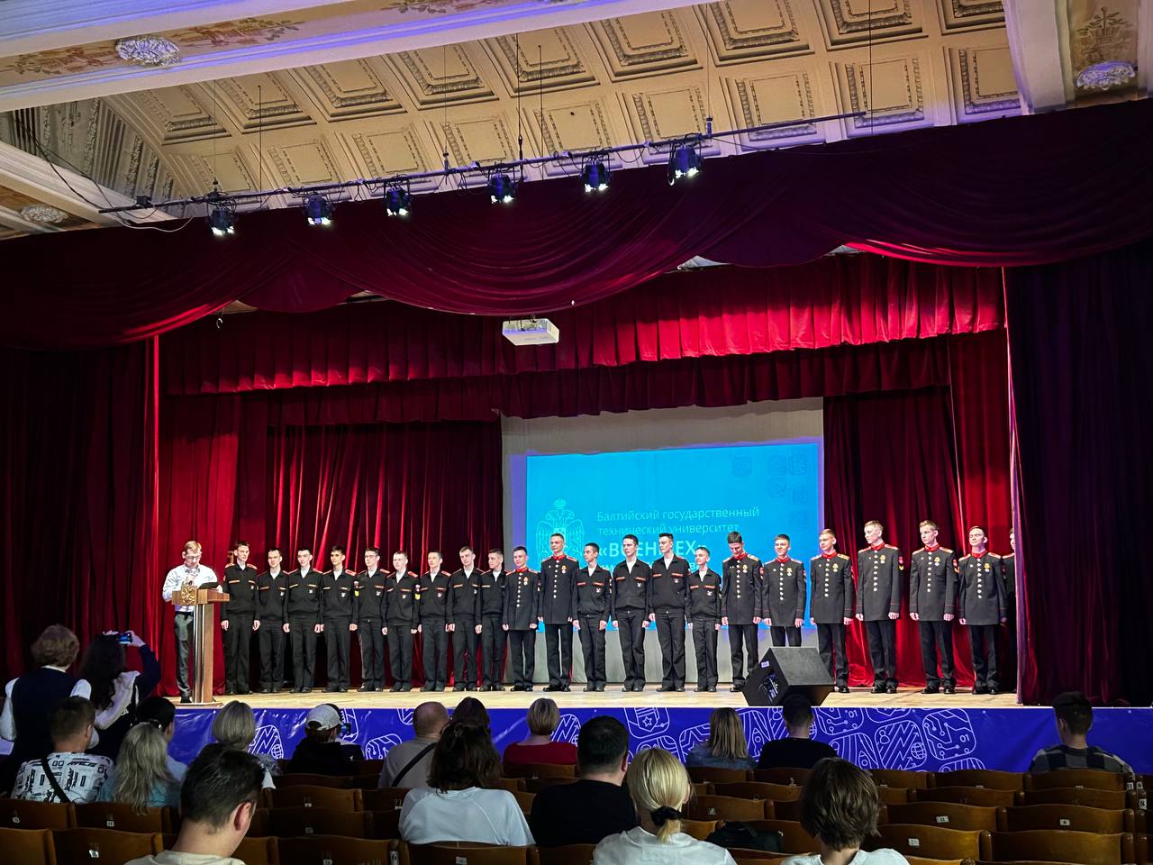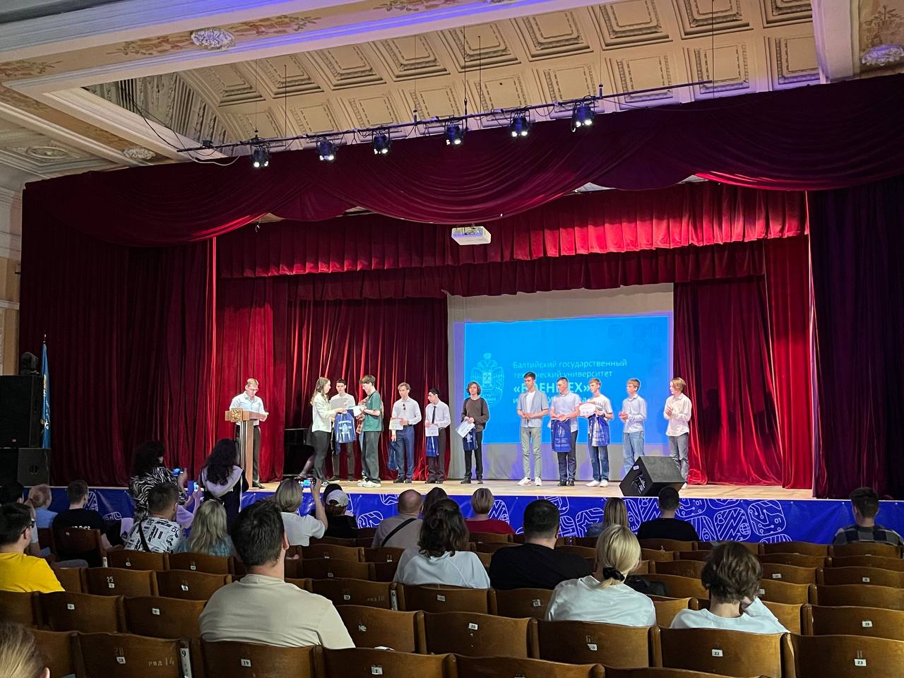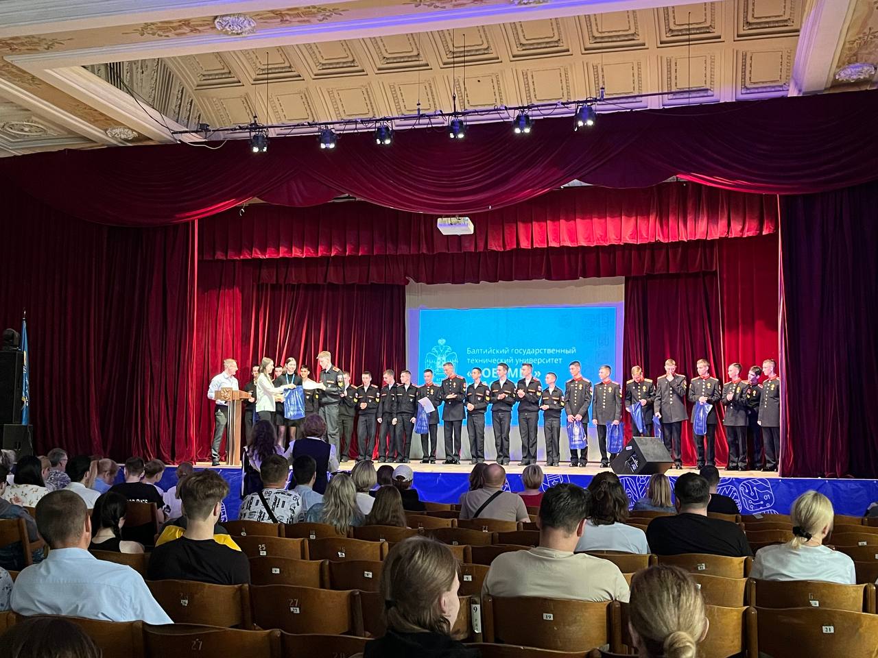 Мероприятие началось с торжественного награждения победителей и призеров Оборонно-технической олимпиады. Ребятам вручили дипломы и памятные призы, но лучшим подарком стала возможность использовать свою победу при поступлении в Военмех — до 8 дополнительных баллов к поступлению (в зависимости от степени диплома).