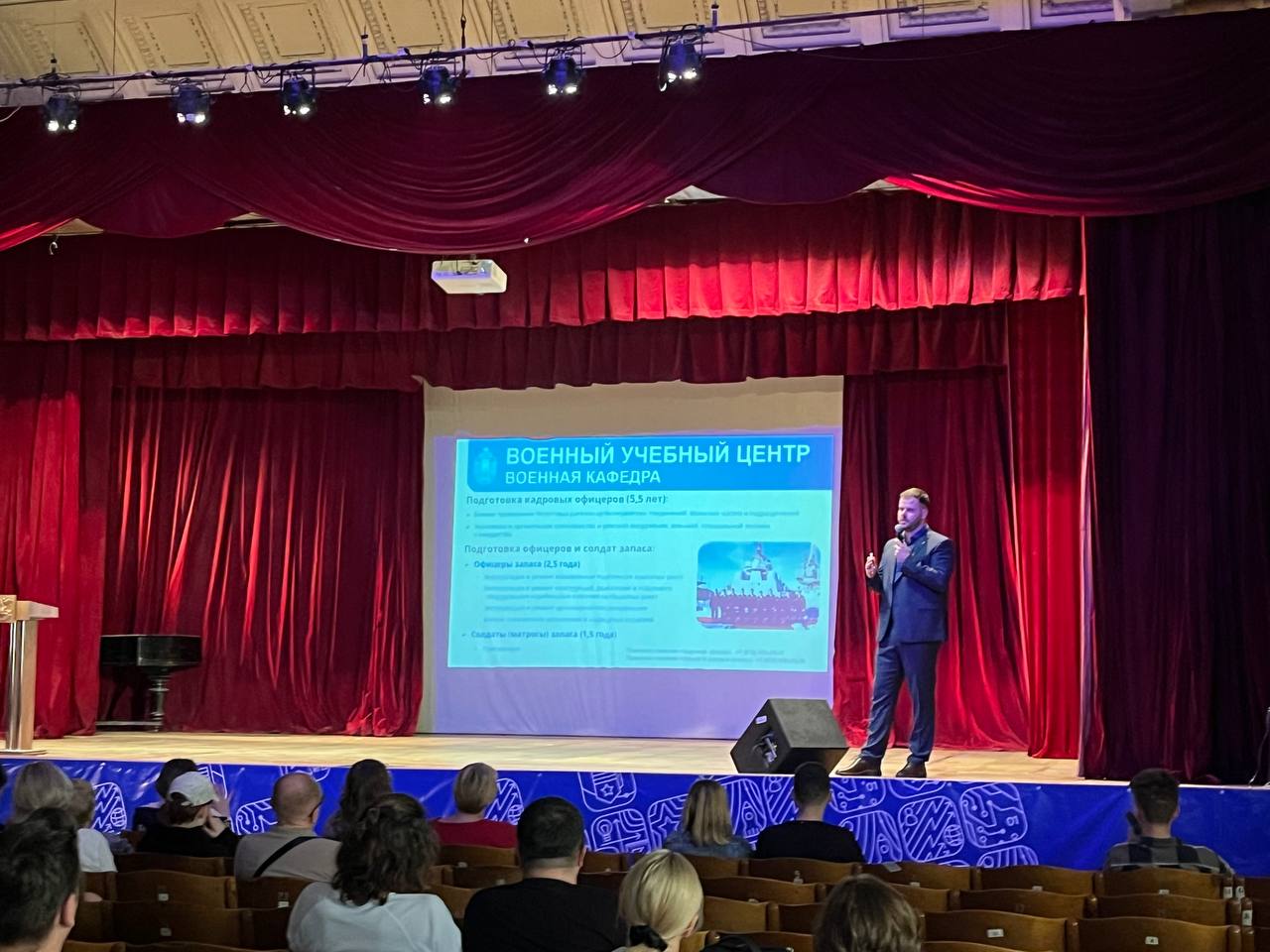 День открытых дверей начался с традиционного выступления ответственного секретаря Приемной комиссии БГТУ «ВОЕНМЕХ» им. Д.Ф. Устинова. В своем рассказе он отразил все ключевые моменты при подаче документов в университет: этапы зачисления, необходимые документы и важные даты.