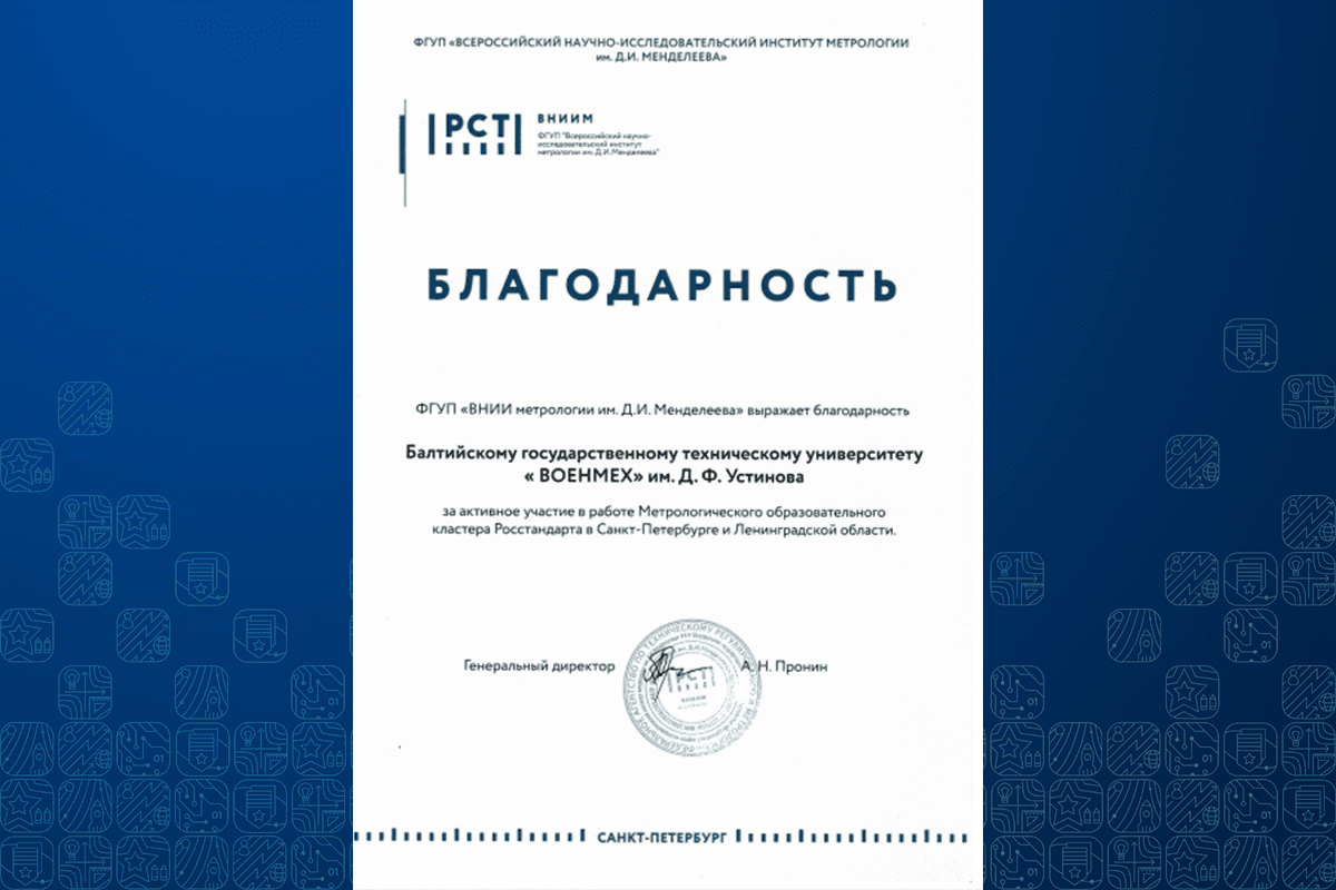 Балтийский Технический Университет получил благодарность за вклад в метрологию