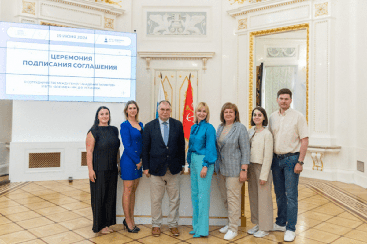 19 июня в стенах Каменностровского дворца прошло знаковое событие – церемония подписания соглашения о сотрудничестве между Балтийским государственным техническим университетом «ВОЕНМЕХ» им. Д.Ф. Устинова и Академией талантов Санкт-Петербурга.