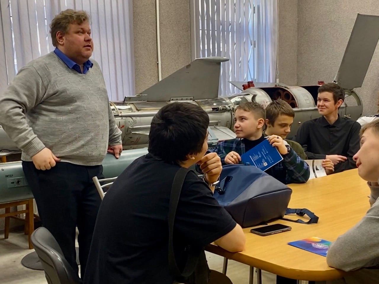 Ребята познакомились с кафедрой А1 «Ракетостроение». Старший преподаватель кафедры Чириков С.А. провел познавательную беседу с гостями, из которой они узнали о создании первых ракет в нашей стране.