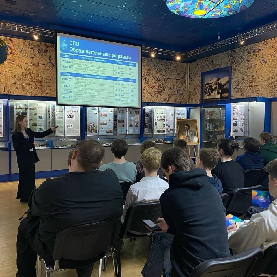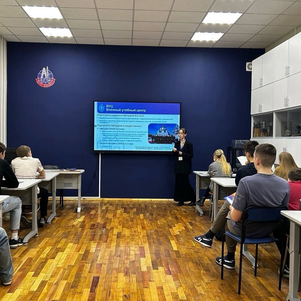 Шипилина Ольга провела профориентационную беседу с учащимися. После встречи ребята узнали, какие факультеты есть в Военмехе, и на чем специализируется каждая кафедра.