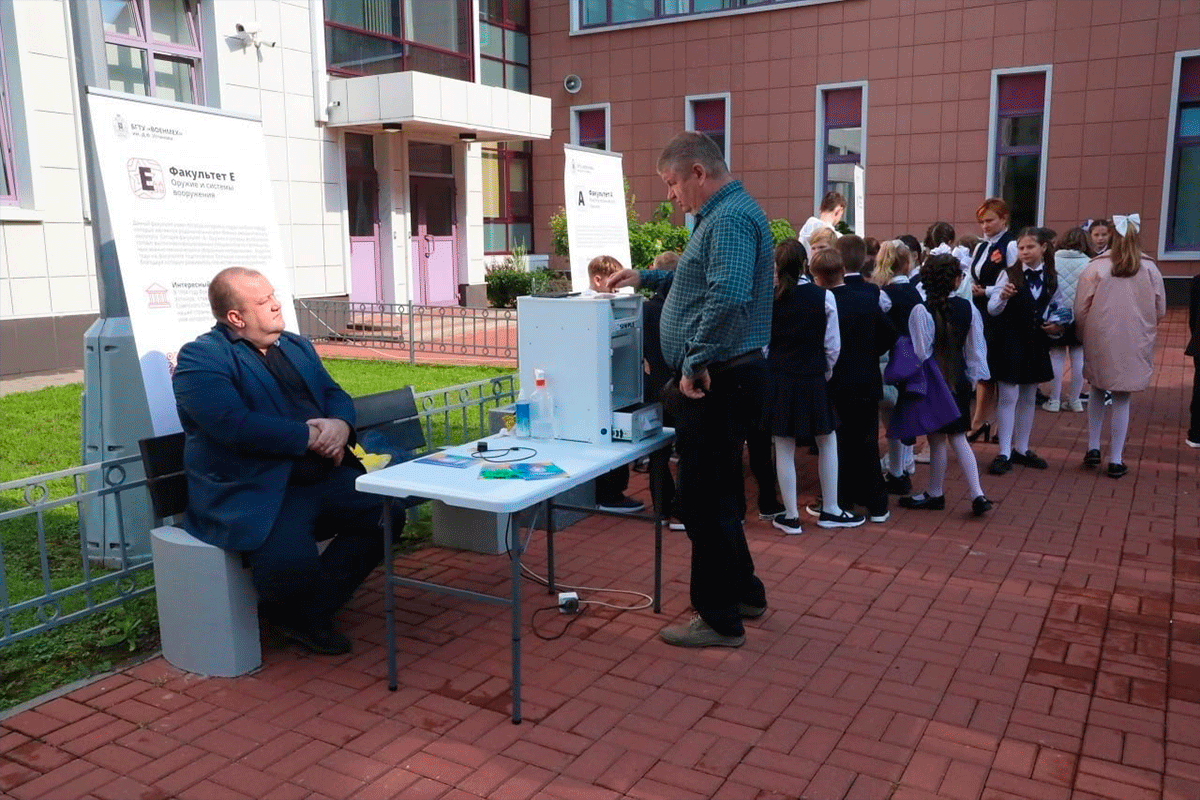 А факультет: Иванов Петр Константинович, ассистент кафедры А4 «Стартовые и технические комплексы ракет и космических аппаратов», рассказал учащимся об устройстве пусковых установок, способах старта ракет и помог разобраться в многообразии специальностей и направлений подготовки на факультете Ракетно-космической техники.