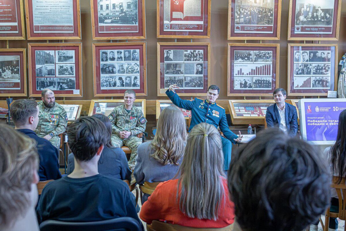 4 апреля в музее БГТУ «ВОЕНМЕХ» им. Д.Ф. Устинова студенты и сотрудники Военмеха пообщались с представителями государственных ведомств, общественных организаций и участниками боевых действий.