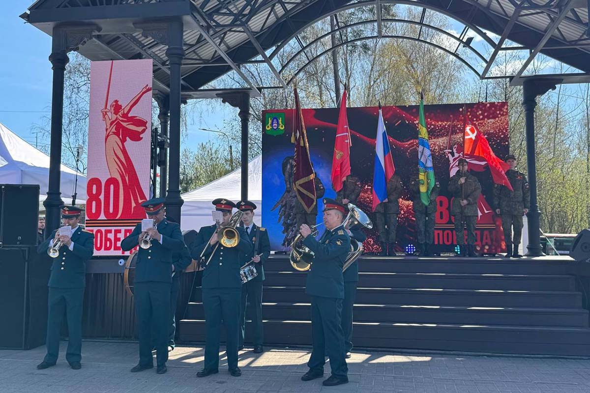 За строем студентов следовали жители поселка с портретами своих предков. Шествие завершилось у памятника «Дорога мужества», где состоялся праздничный концерт, посвященный 80-летию Великой Победы.
