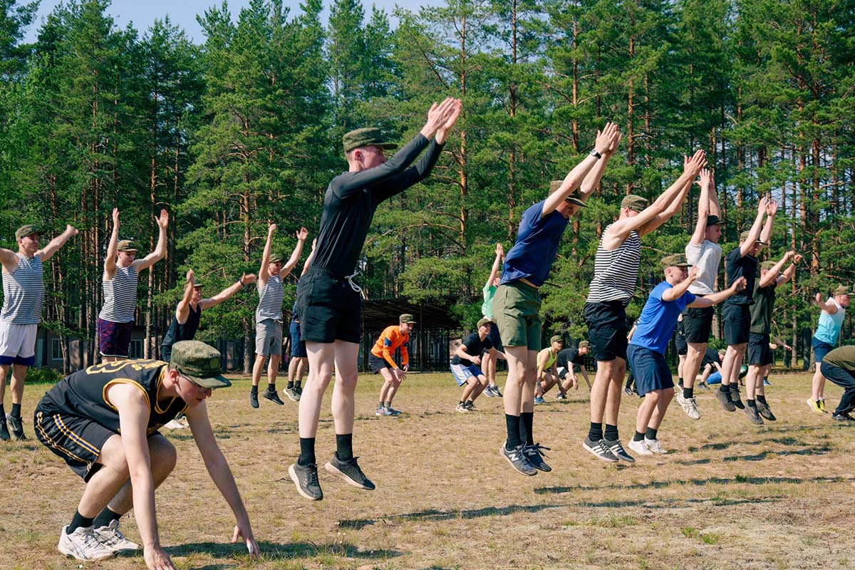 Под руководством Подсобляева Евгения Феликсовича, руководителя смены, капитана 1 ранга запаса, и сотрудника кафедры О5 «Физическое воспитание и спорт» Купреева Марата Валерьевича обучающиеся 2-го курса по направлениям офицеров и матросов запаса выполнили комплекс спортивных упражнений, показали свою силу, выносливость и командный дух