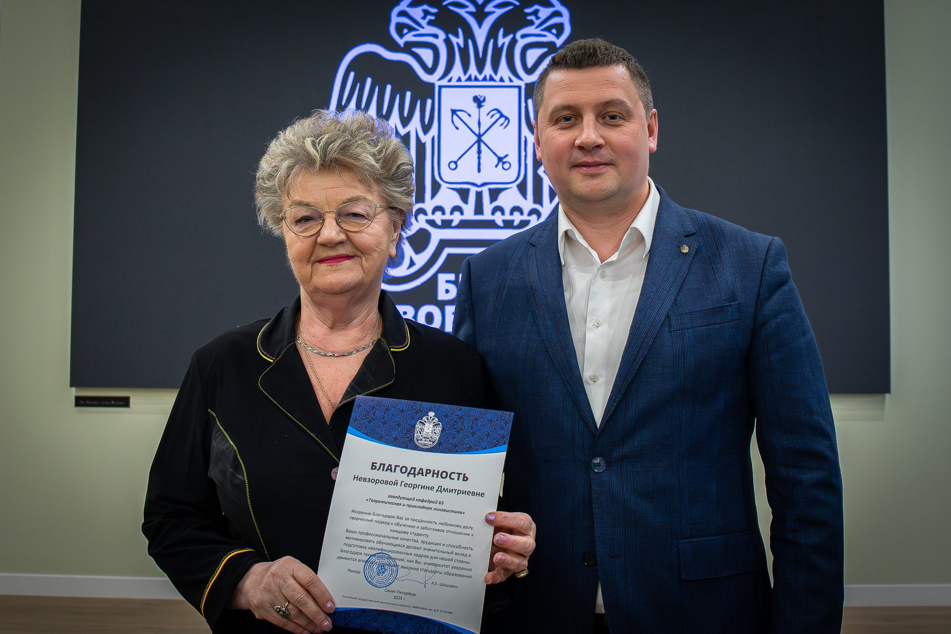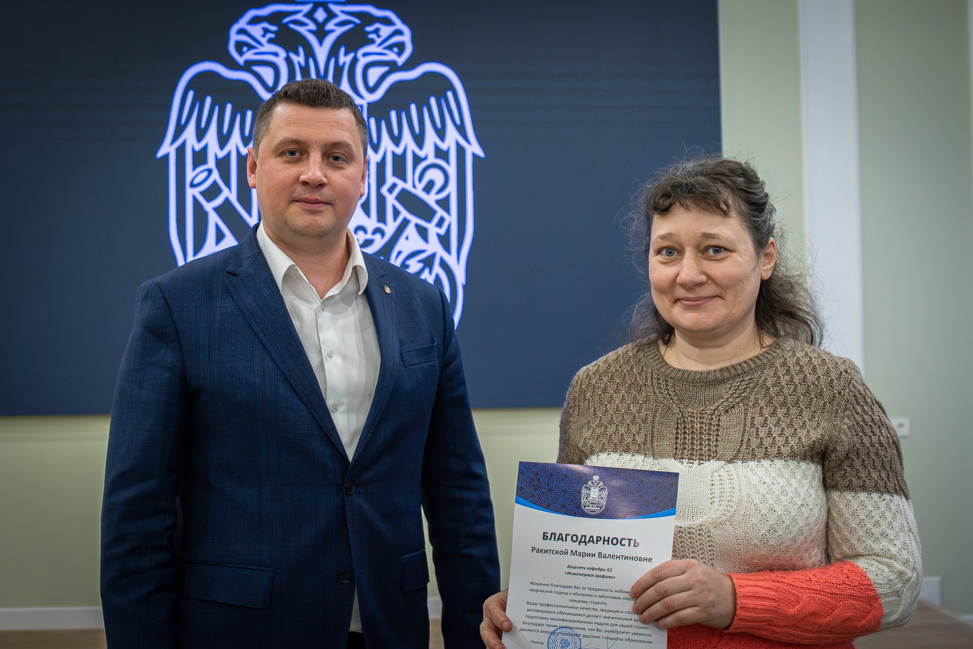 Также была вручена благодарность за подготовку и реализацию программы повышения квалификации для структурного подразделения МВД патрульно-постовой службы Марневской Ирине Васильевне, старшему преподавателю кафедры Б6 «Стратегическое управление высокотехнологичными предприятиями».