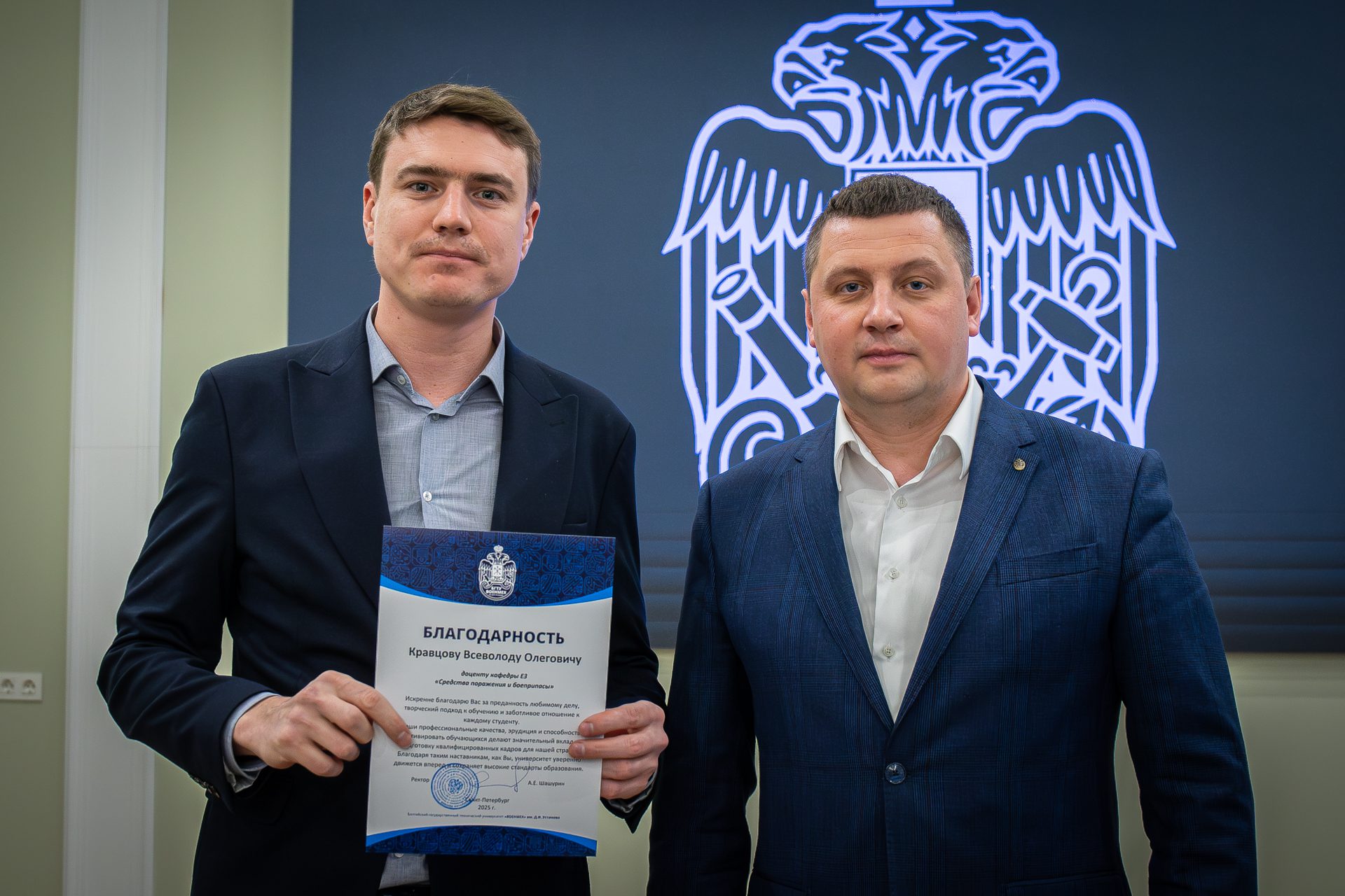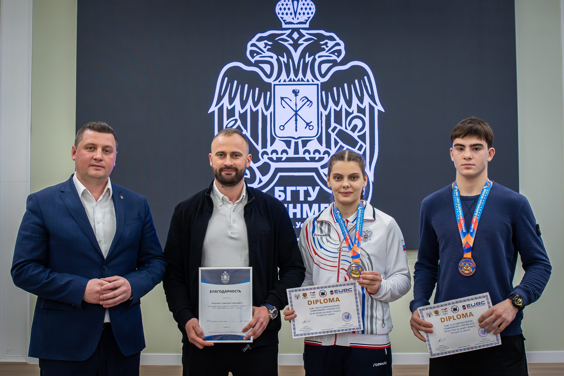 На заседании также наградили благодарностью за подготовку спортсменов Рогалева Алексея Сергеевича, тренера по боксу и старшего преподавателя кафедры С2 «Физическое воспитание и спорт», чьи воспитанники стали победителями чемпионата Европы по боксу: