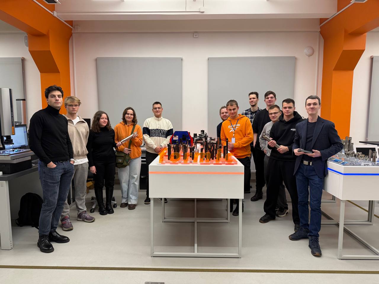 В рамках изучения дисциплины «Модульное проектирование средств технологического оснащения в роботизированных комплексах» 17 ноября состоялся учебный визит магистрантов кафедры Е2 группы Е2М11 под руководством преподавателя Кононова Кирилла Ивановича на предприятие АО «ФОРМИК». Цель мероприятия — получить представление о современном технологическом оснащении, применяемом на производстве в условиях высокоточной обработки.