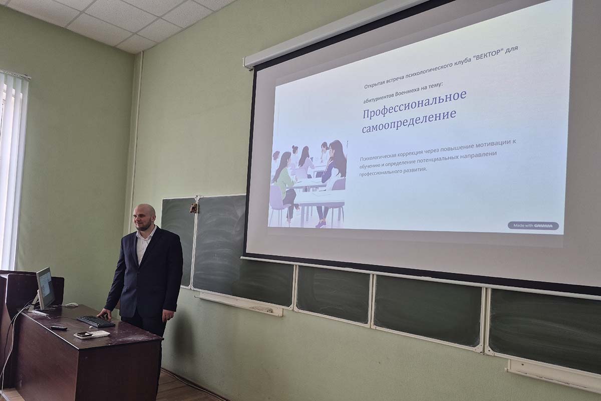 В рамках Дня открытых дверей в БГТУ «ВОЕНМЕХ» им. Д.Ф. Устинова сотрудники Отдела психологического сопровождения рассказали абитуриентам о проводимых мероприятиях по профориентации и организовали первое занятие в рамках Школы психолога на тему: «Профессиональное самоопределение».