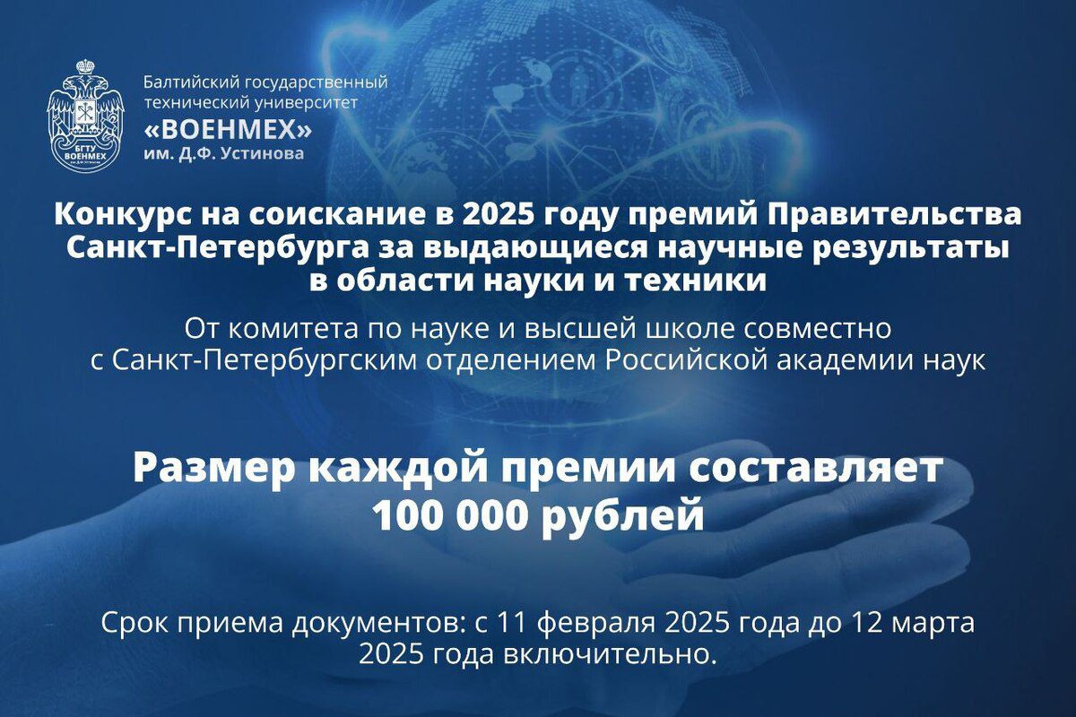 Комитет по науке и высшей школе Санкт-Петербурга объявляет старт ежегодного конкурса, который уже более десяти лет помогает талантливой молодежи реализовать свои самые смелые идеи. Это ваш шанс заявить о себе, получить поддержку и финансовую помощь для развития проектов.