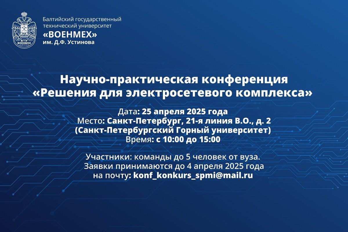 Место: Санкт-Петербург, 21-я линия В.О., д. 2 (Санкт-Петербургский Горный университет)