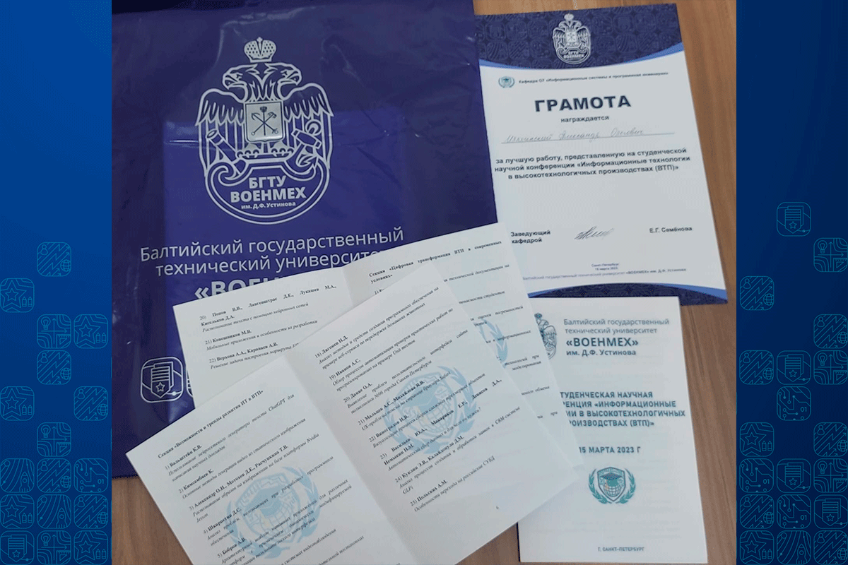 15 марта в учебно-лабораторном корпусе БГТУ «ВОЕНМЕХ» им. Д.Ф. Устинова на базе кафедры О7 «Информационные системы и программная инженерия» состоялась студенческая научная конференция «Информационные технологии в высокотехнологичных производствах (ВТП)».