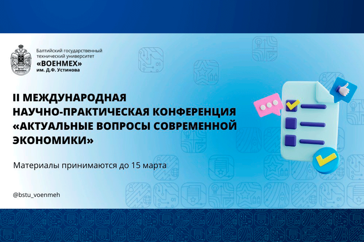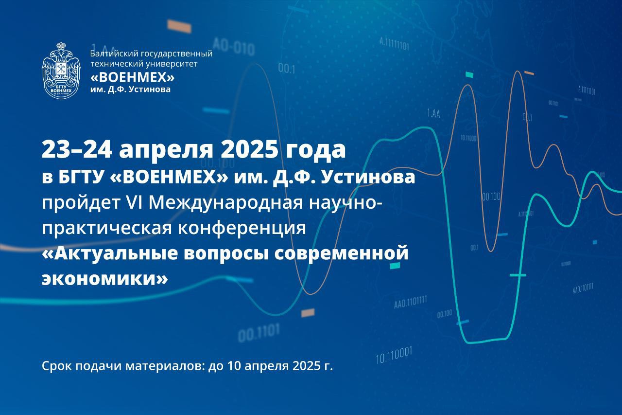 23–24 апреля 2025 года в БГТУ «ВОЕНМЕХ» им. Д.Ф. Устинова пройдет VI Международная научно-практическая конференция «Актуальные вопросы современной экономики».