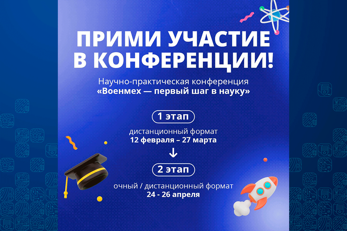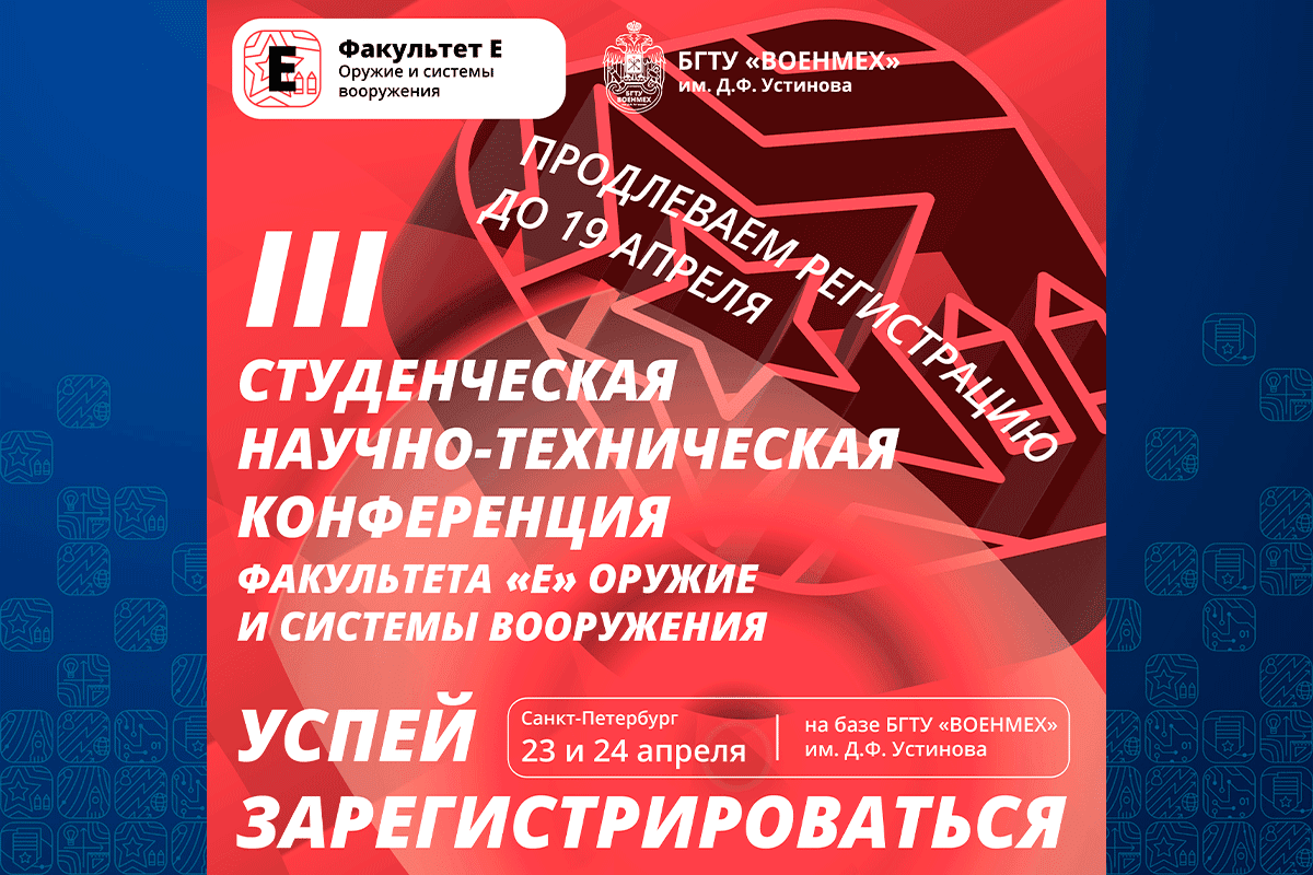 23–25 апреля 2025 года в БГТУ «ВОЕНМЕХ» им. Д.Ф. Устинова пройдет конференция для студентов, магистрантов, аспирантов и молодых ученых!