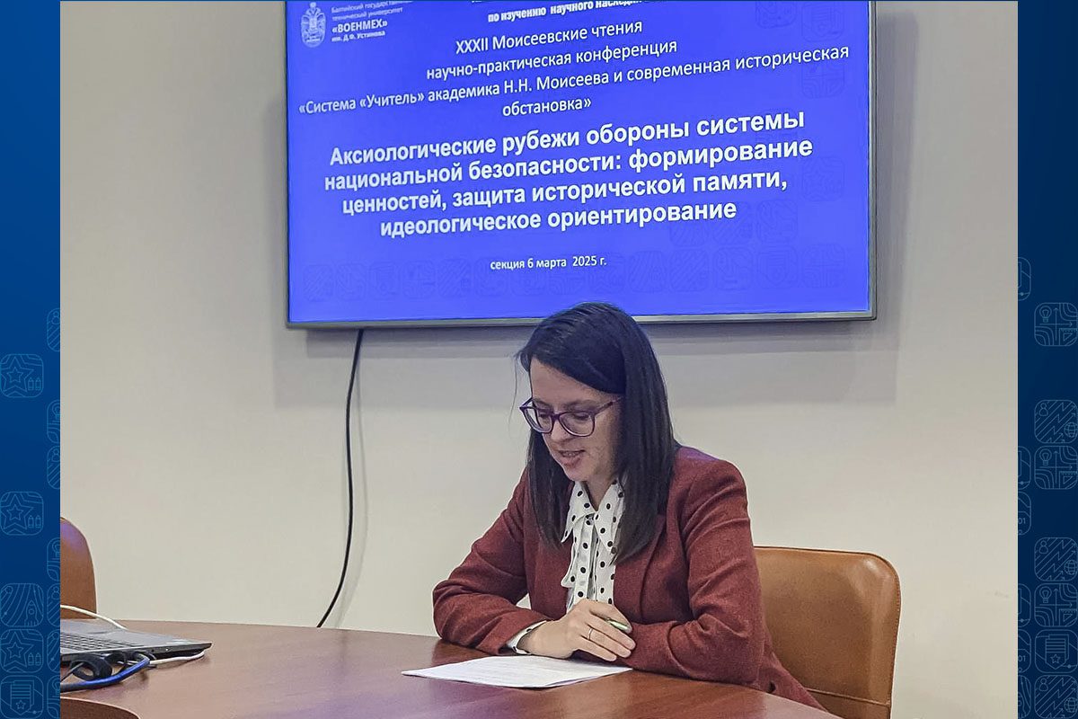 6 марта 2025 года в БГТУ «ВОЕНМЕХ» им. Д.Ф. Устинова состоялась секция XXXII Моисеевских чтений на тему: «Аксиологические рубежи обороны системы национальной безопасности: формирование ценностей, защита исторической памяти, идеологическое ориентирование». Мероприятие было организовано научно-исследовательской лабораторией «Безопасное развитие социальных систем» в рамках научно-практической конференции «Система «Учитель» академика Н.Н. Моисеева и современная историческая обстановка».