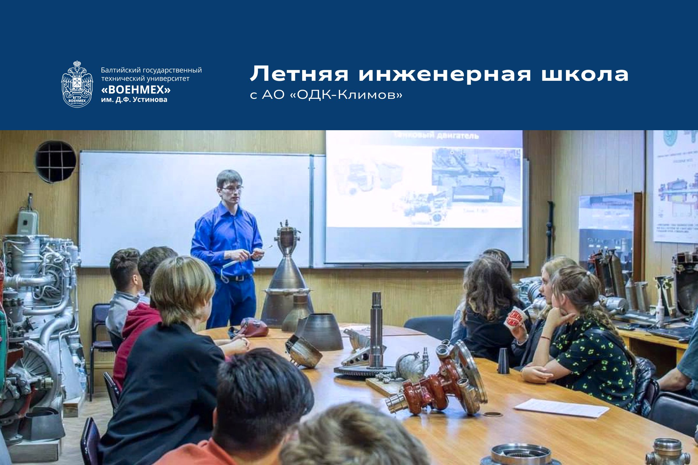 С 16 по 20 июня в БГТУ «ВОЕНМЕХ» им. Д.Ф. Устинова прошла Летняя инженерная школа, организованная совместно с лидером отечественного двигателестроения – АО «ОДК-Климов». 50 увлечённых школьников 8–11 классов из Санкт-Петербурга и Ленинградской области провели насыщенную неделю, погрузившись в мир авиации, инженерии и высоких технологий.