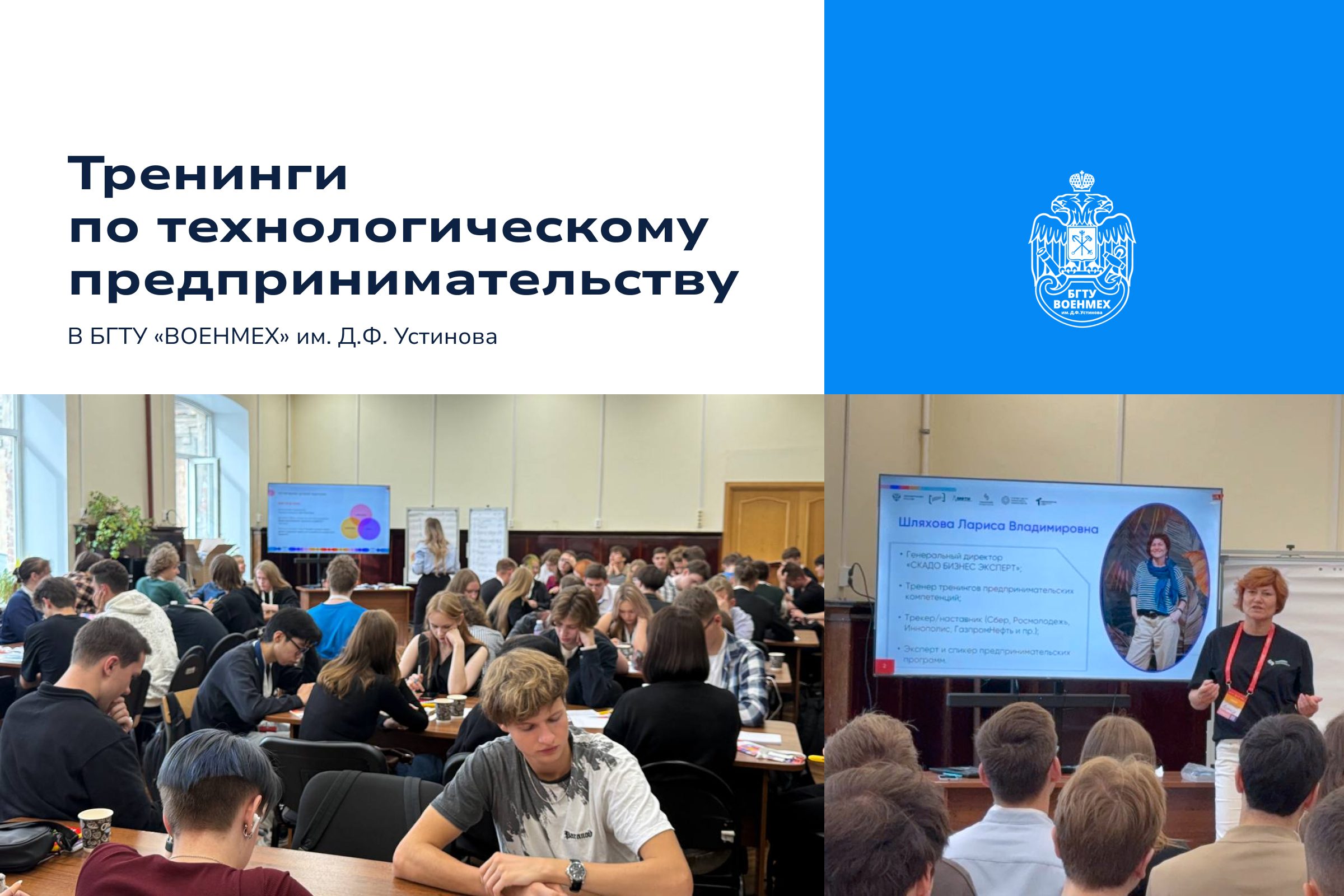 15 и 16 сентября в БГТУ «ВОЕНМЕХ» им. Д.Ф. Устинова прошли тренинги, направленные на знакомство обучающихся с основами технологического предпринимательства и помощь в совершении первых шагов при создании собственных проектов.