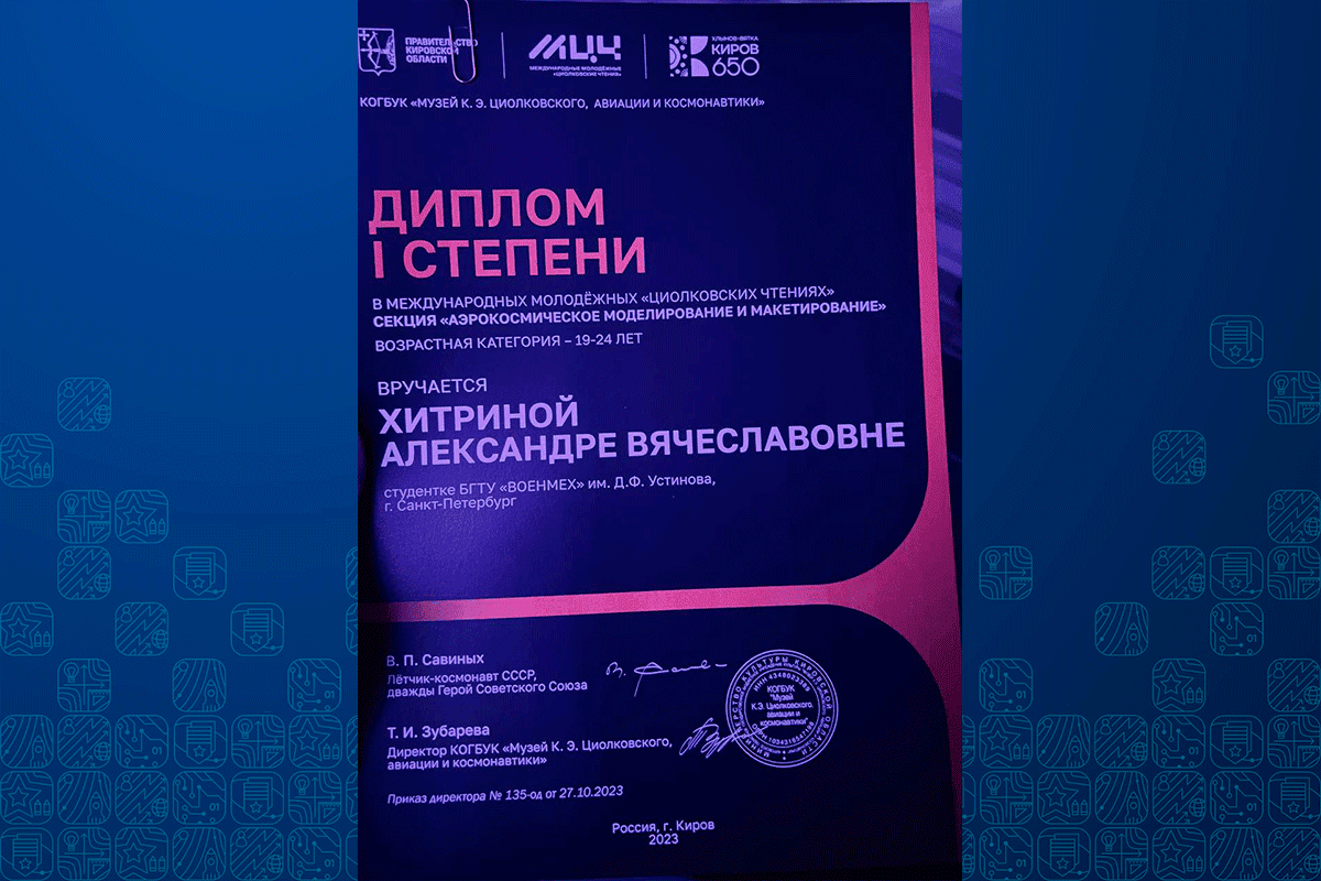 29 мая состоялся выпуск обучающихся инженерно-космической школы имени космонавта, дважды Героя Советского Союза Георгия Михайловича Гречко при БГТУ «ВОЕНМЕХ» им. Д. Ф. Устинова.