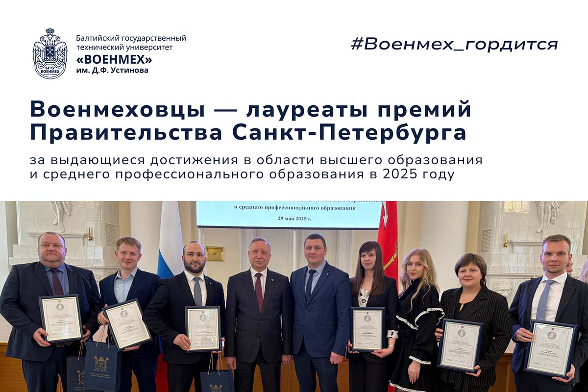 29 мая 2025 в Смольном в торжественной обстановке состоялось награждение лауреатов премий. Губернатор Санкт-Петербурга Александр Дмитриевич Беглов наградил ученых нашего города. Поддержать военмеховцев приехал и.о. ректора БГТУ «ВОЕНМЕХ» им. Д.Ф. Устинова Александр Евгеньевич Шашурин.