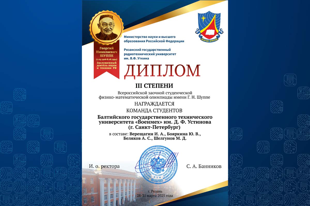 На базе РГРУ им. В.Ф. Уткина (Рязанского государственного радиотехнического университета им. В.Ф. Уткина, Рязань) состоялась Всероссийской студенческой физико-математической олимпиады имени Г.Н. Шуппе, проводимая в смешанном формате (очно и онлайн) в личном и командном конкурсах (28-31 марта 2025 года). В очном формате участвовали студенты 18 университетов, в заочном -16, включая МАИ, НГТУ, ВАС им. С.М, Буденного, […]