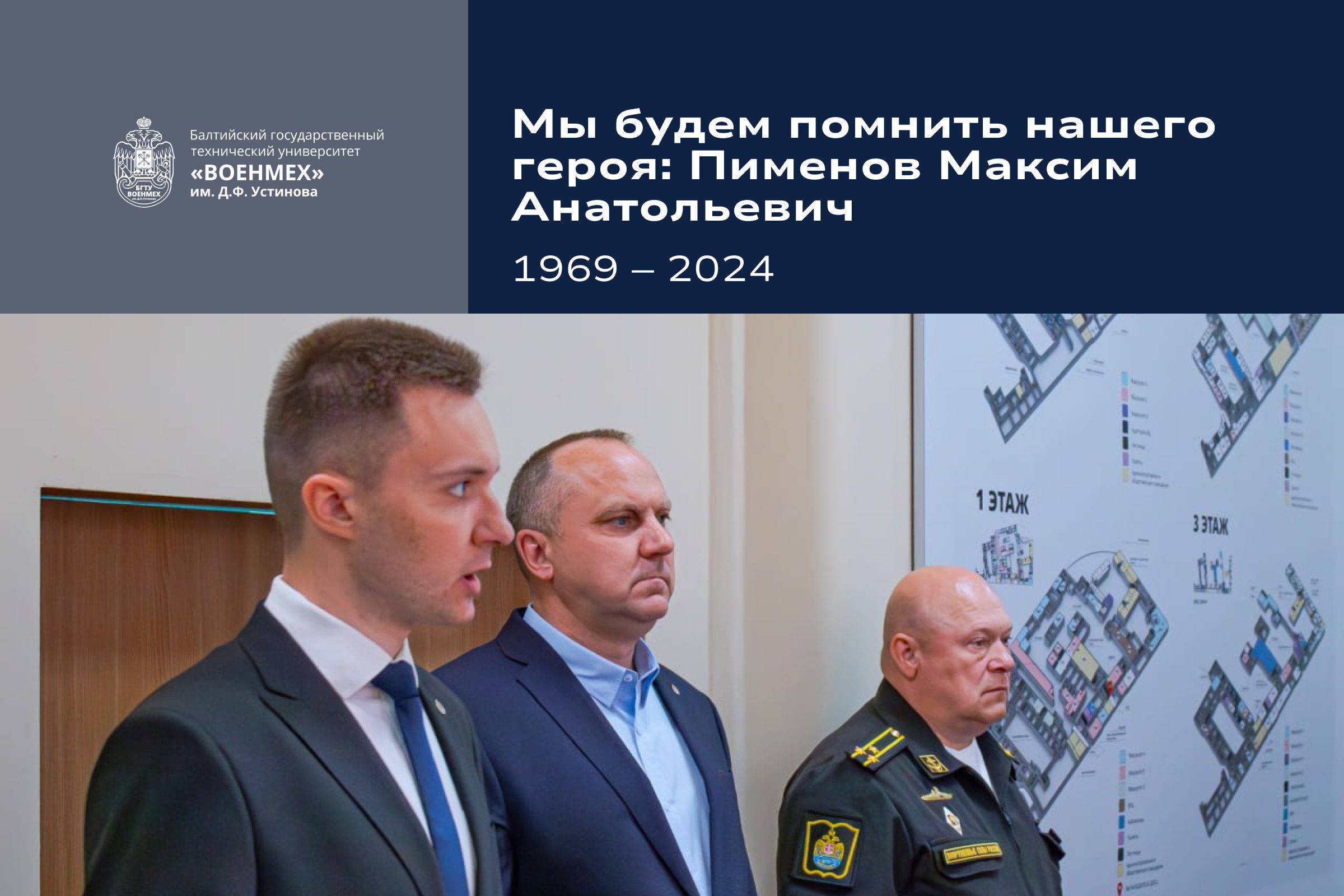 16 июля в БГТУ «ВОЕНМЕХ» имени Д.Ф. Устинова состоялась церемония открытия именной таблички, посмертно посвящённой выпускнику нашего университета Максиму Анатольевичу Пименову. В прошлом году Максим Анатольевич погиб при исполнении воинского долга на территории Курской области.