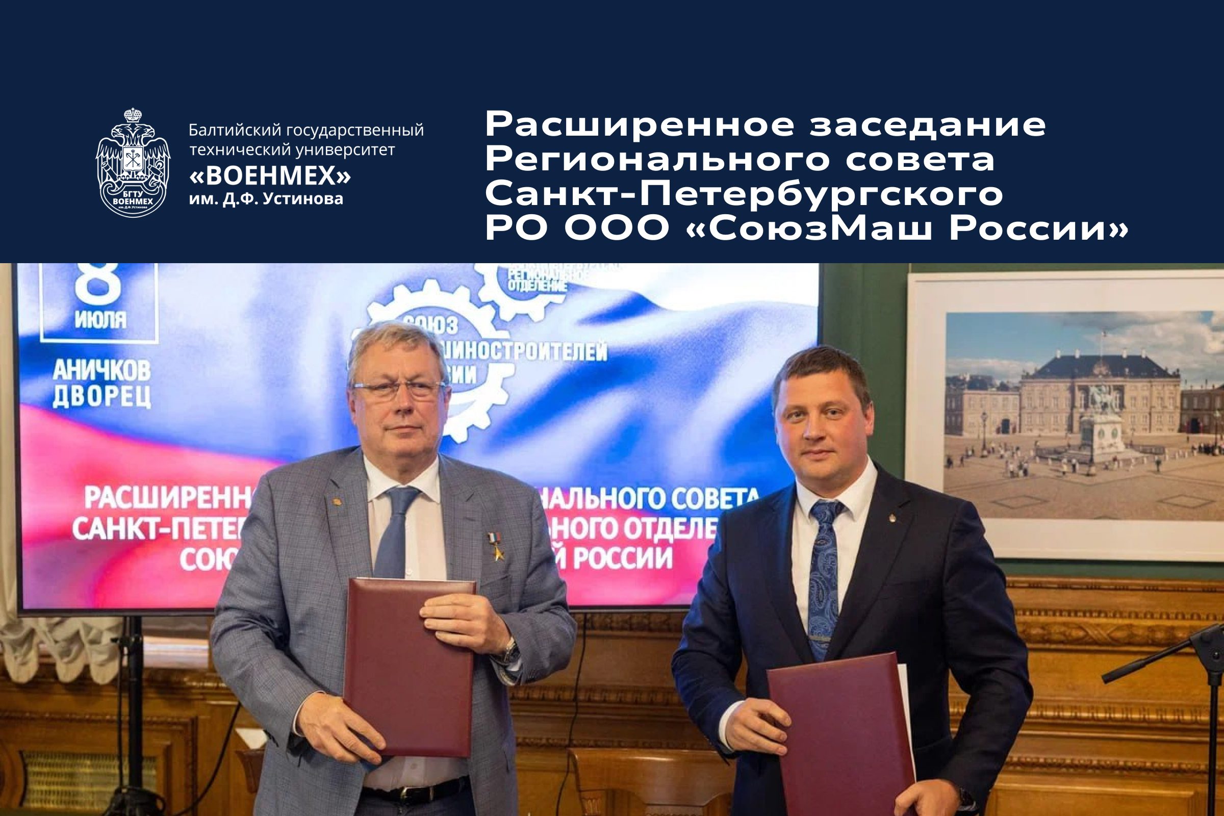 8 июля состоялось расширенное заседание Регионального совета Санкт-Петербургского РО ООО «СоюзМаш России». В мероприятии приняли участие представители машиностроительной отрасли, региональной администрации и образовательных учреждений.